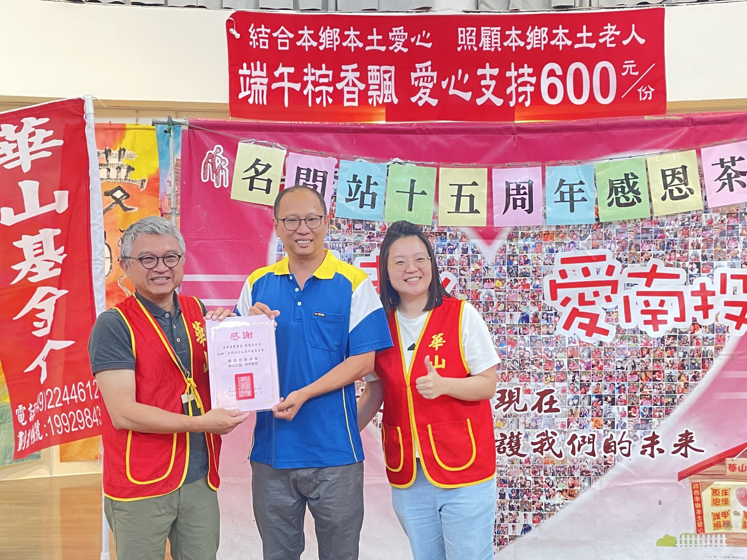華山基金會名間愛心天使站於115年4月22日上午,假松柏嶺遊客中心舉辦15周年感恩茶會,以「茶香回憶」為主題,串起長輩生命故事與在地文化。活動由感恩影片揭開序幕,溫馨畫面感動全場,站長透過影像向長年支持的善心人士、鄉親及義工表達誠摯感謝,也特別感謝參山國家風景區管理處及𡷈茶屋熱心贊助DIY活動與餐點,讓活動得以順利圓滿舉行。