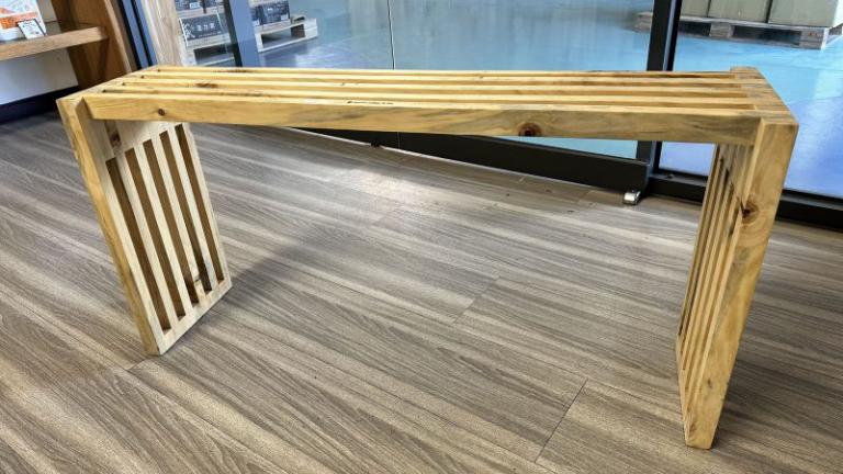 ▲廢木材製作的椅子。(圖/記者蔣彤雲攝)