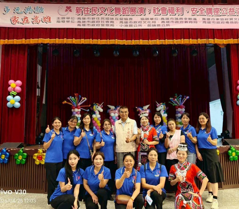 記者蘇莉湘 / 高雄報導】為促進多元文化交流、強化新住民在地支持系統,由**高雄市新住民姐妹互促協會**主辦的「多元共融・家在高雄」新住民文化舞蹈展演暨教育、社會福利、安全公益講座活動,於4月25日在**高雄市立空中大學**溫馨登場。活動結合文化展演與公共議題宣導,展現高雄多元包容的城市精神,吸引眾多新住民家庭與在地民眾熱情參與,現場氣氛熱絡感人。