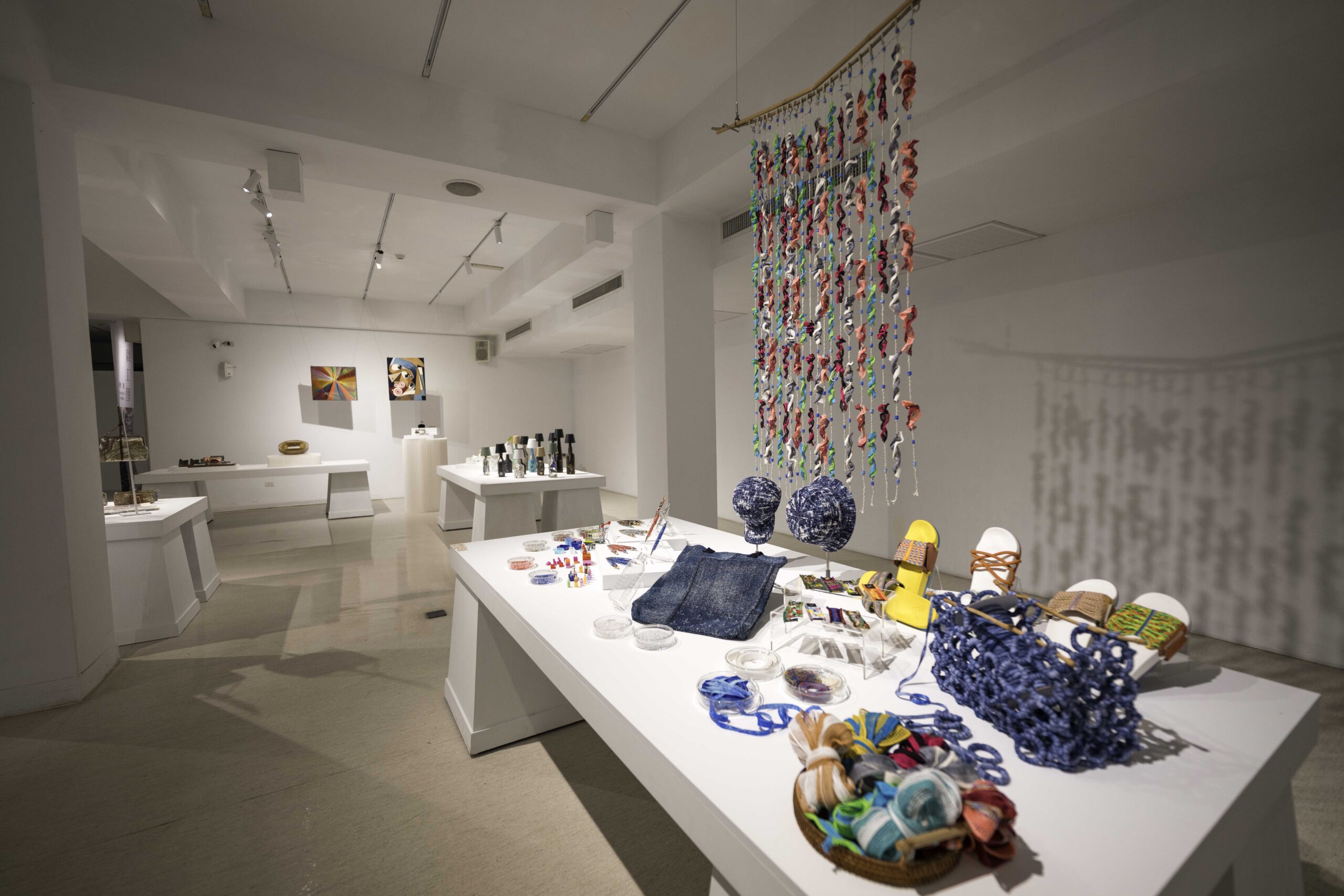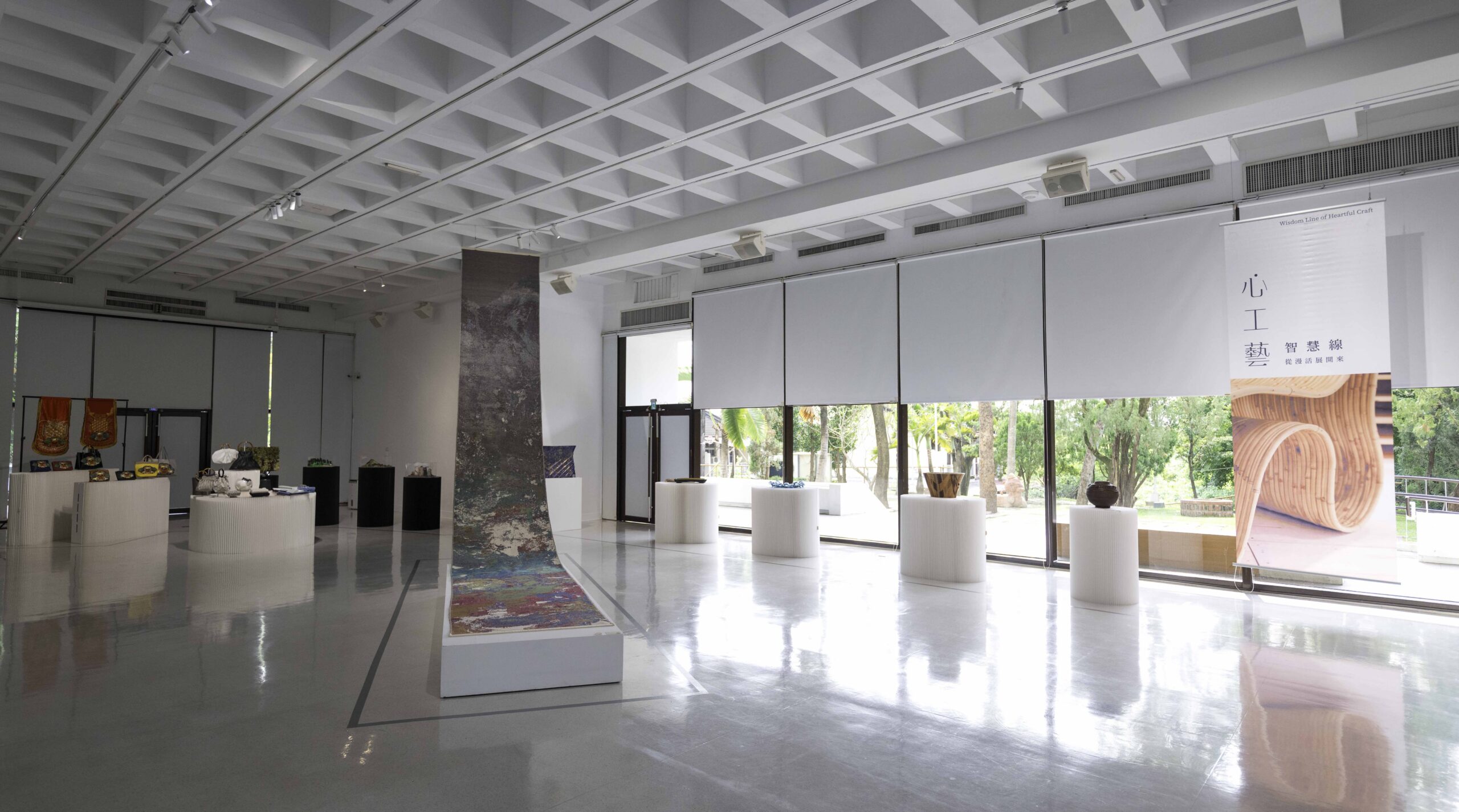 展品規劃對應「內波區」與「外波區」,內波區呈現工藝中心典藏作品與技術合作成果,展現臺灣工藝長期累積的文化底蘊與技術深度;外波區則聚焦13項回應環境議題的創新案例,涵蓋循環再生材料與製程技術的實踐,呈現工藝在當代面對資源與環境挑戰的多元回應,兩區透過空間動線形成由內而外擴散的展覽結構。策展脈絡則以「永續發展的生命線」、「心工藝的智慧線」、「綠工藝的感情線」、「偵碳行動的健康線」、「低碳美學的永續線」等五大主題作為觀看線索,從永續發展、工藝思維到低碳實踐,串聯各展區內容,帶領觀者從多元面向理解工藝與環境之間的關係。