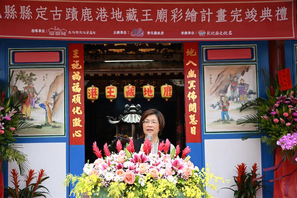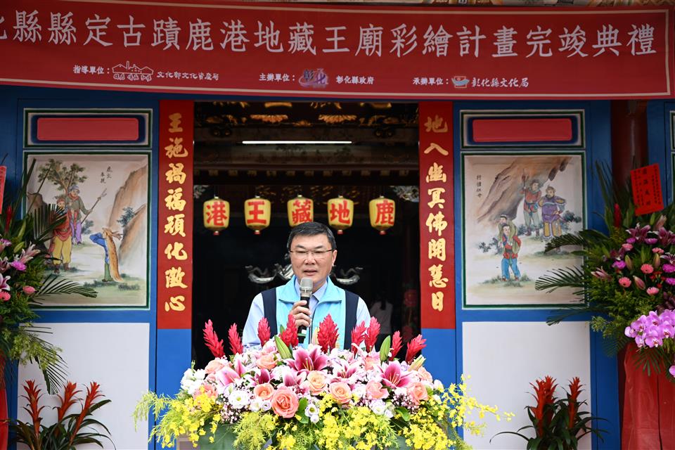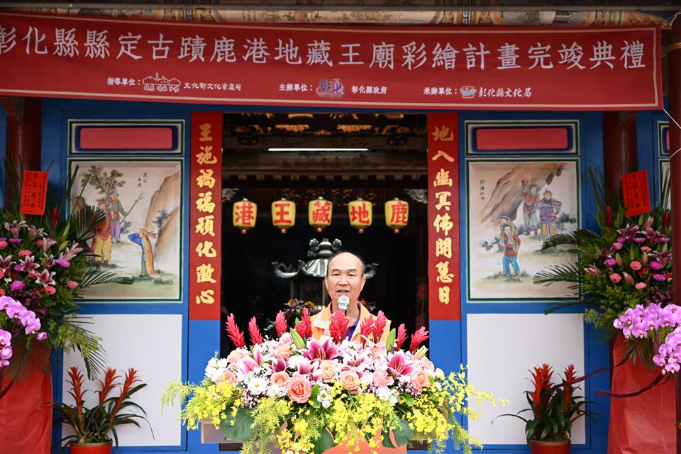鹿港鎮長許志宏表示,鹿港地藏王廟歷史非常悠久,也是在地信仰中心。地藏王廟坐東朝西,長期受到西曬,造成地藏王廟很多彩繪脫落。感謝縣府局處共同努力,相信在彩繪後,能夠繼續傳承百年文化資產。