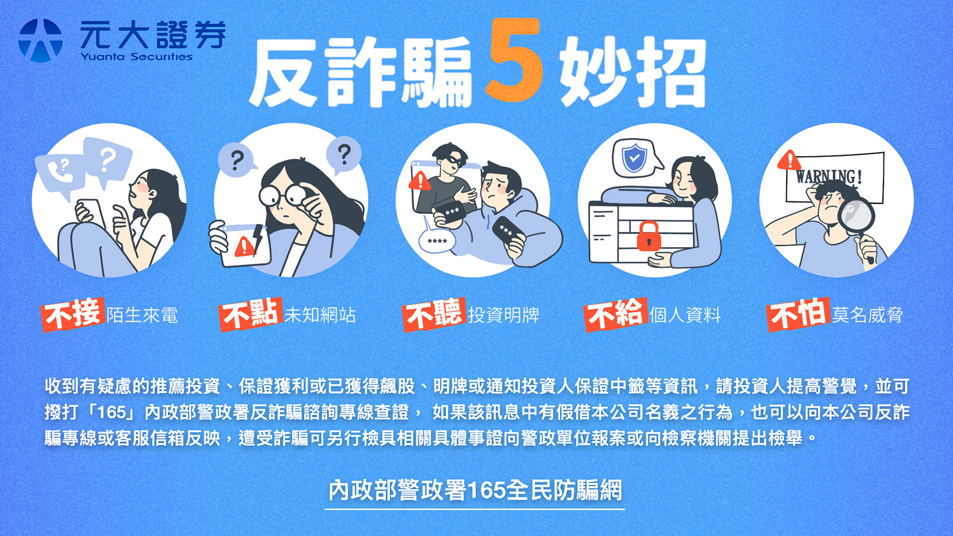 面對日益翻新的詐騙手法,元大證券積極建構全方位金融防護網。針對讓投資人眼花撩亂的不實消息與假冒資訊,元大證券特別推出「識別消息來源驗證平台——識詐守門員」,這項服務「無需登入」,只要點開網頁、在查詢框輸入電子郵件、電話、網址或社群帳號,系統即能核對並回傳真偽判定結果。例如當LINE或是Email收到自稱是元大理專的「投資獲利機會」,或是被要求點擊連結領取研究報告時,只需將對方的電話、電子信箱或該段神祕網址複製,貼入「識詐守門員」就能進行比對,降低因一時大意而受騙的風險。