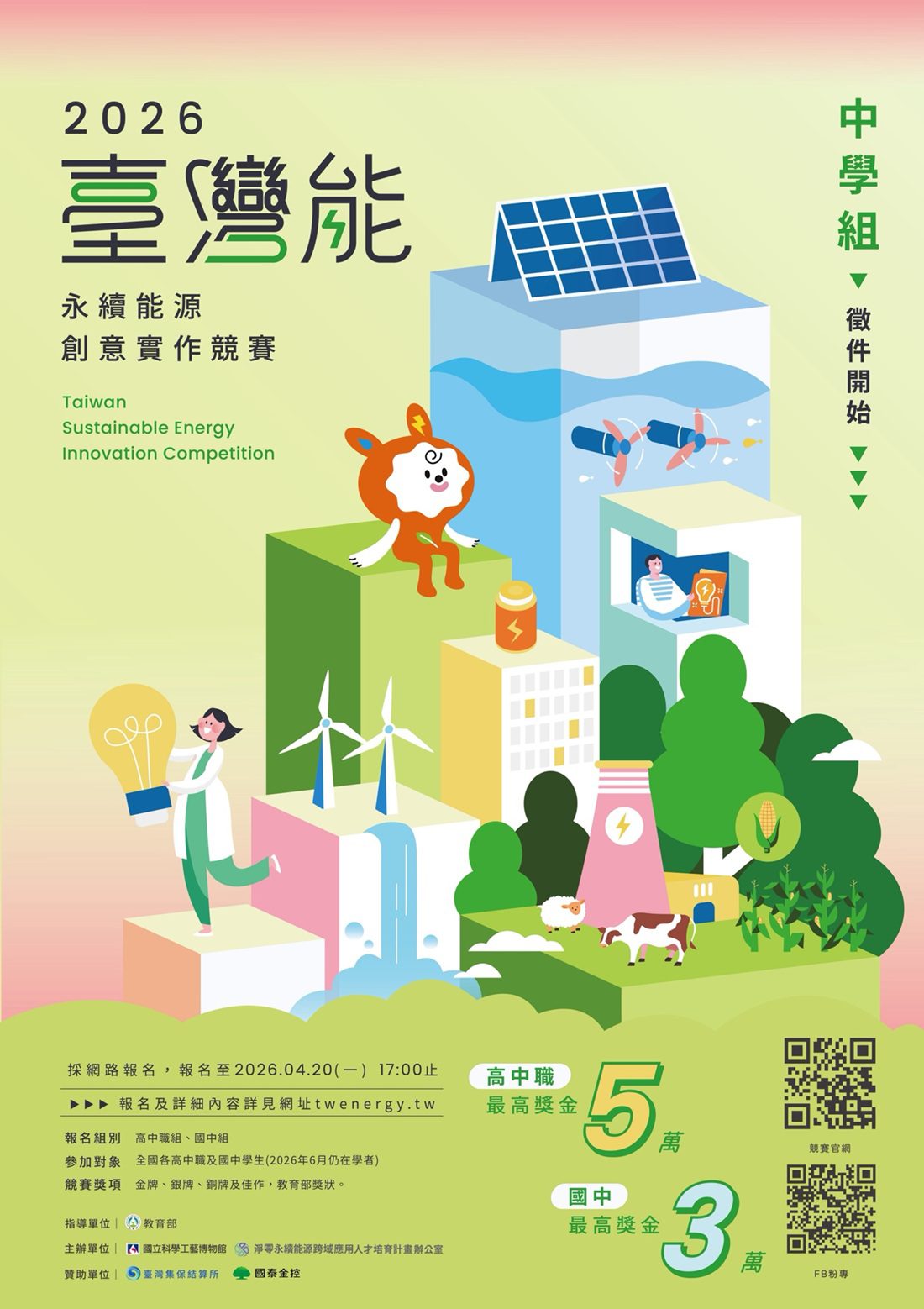 Previous Article 「臺灣能-永續能源創意實作競賽」報名延長至5月13日止! 「臺灣能-永續能源創意實作競賽」報名延長至5月13日止!