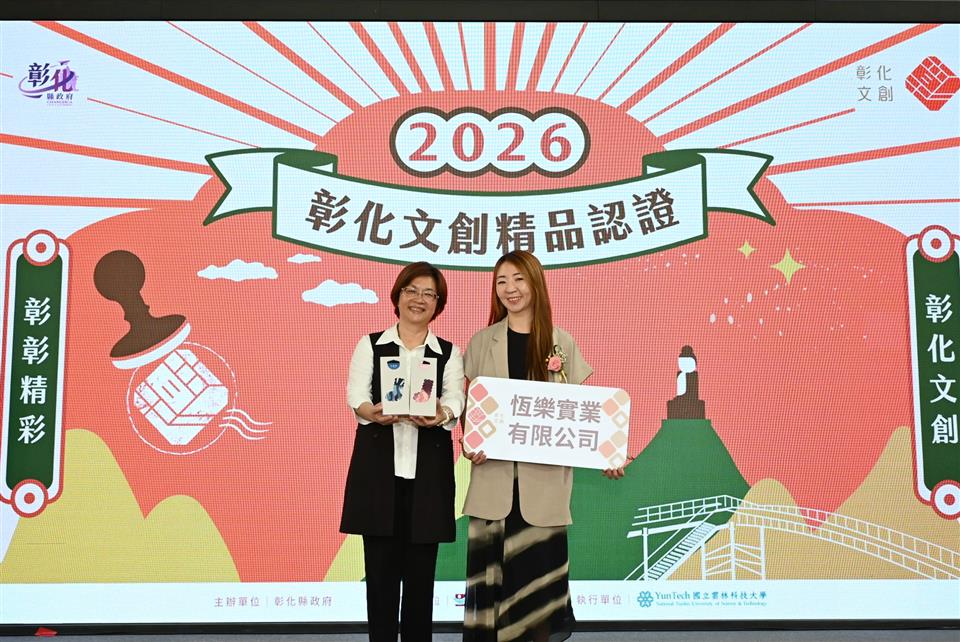 彰化縣政府為鼓勵縣內業者打造具文化意象的文創商品,提升產品價值,舉辦「2026彰化文創精品認證徵選」活動,並於今(29)日上午於縣府中庭舉行授證典禮,由縣長王惠美親自表揚獲獎業者。王縣長表示,今年徵選活動特別針對市場需求,首度新增「文創精品類」,與既有「文創商品類」及「視覺包裝設計類」共同評選,在質與量上都有顯著提升。本次共有70家業者、135件商品參賽,其中有30家是首度投件的新面孔,顯示出「彰化味」品牌正吸引許多優秀人才加入。經專家嚴格評選,最終甄選出13件優秀作品(精品類3件、商品類5件、視覺包裝5件),獲獎作品皆以彰化文化風土與地方生活為靈感,都擁有獨一無二的故事,充分展現彰化文創產業逐漸成熟。