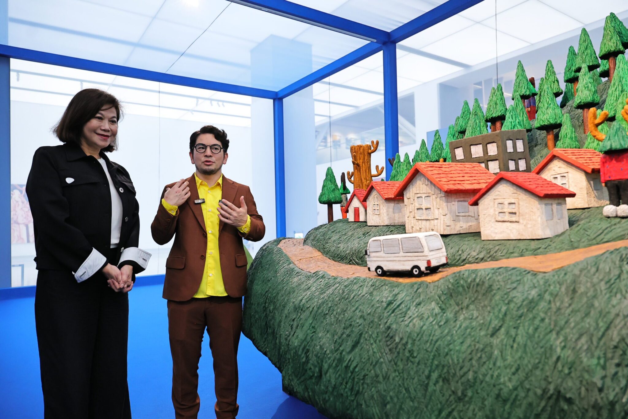 基隆副市長邱佩琳現場指出,平子老師的作品色彩大膽卻和諧,以細膩的藝術語彙,將基隆的群山與港灣融合其代表性的創作角色「小樹人」,彷彿走入童話般的自然秘境,傳遞出自由與純粹的內在情感,希望市民透過這場展覽,獲得療癒與靈感。她也感謝文化觀光局的用心策劃,讓基隆的藝術景致更添豐富色彩。
