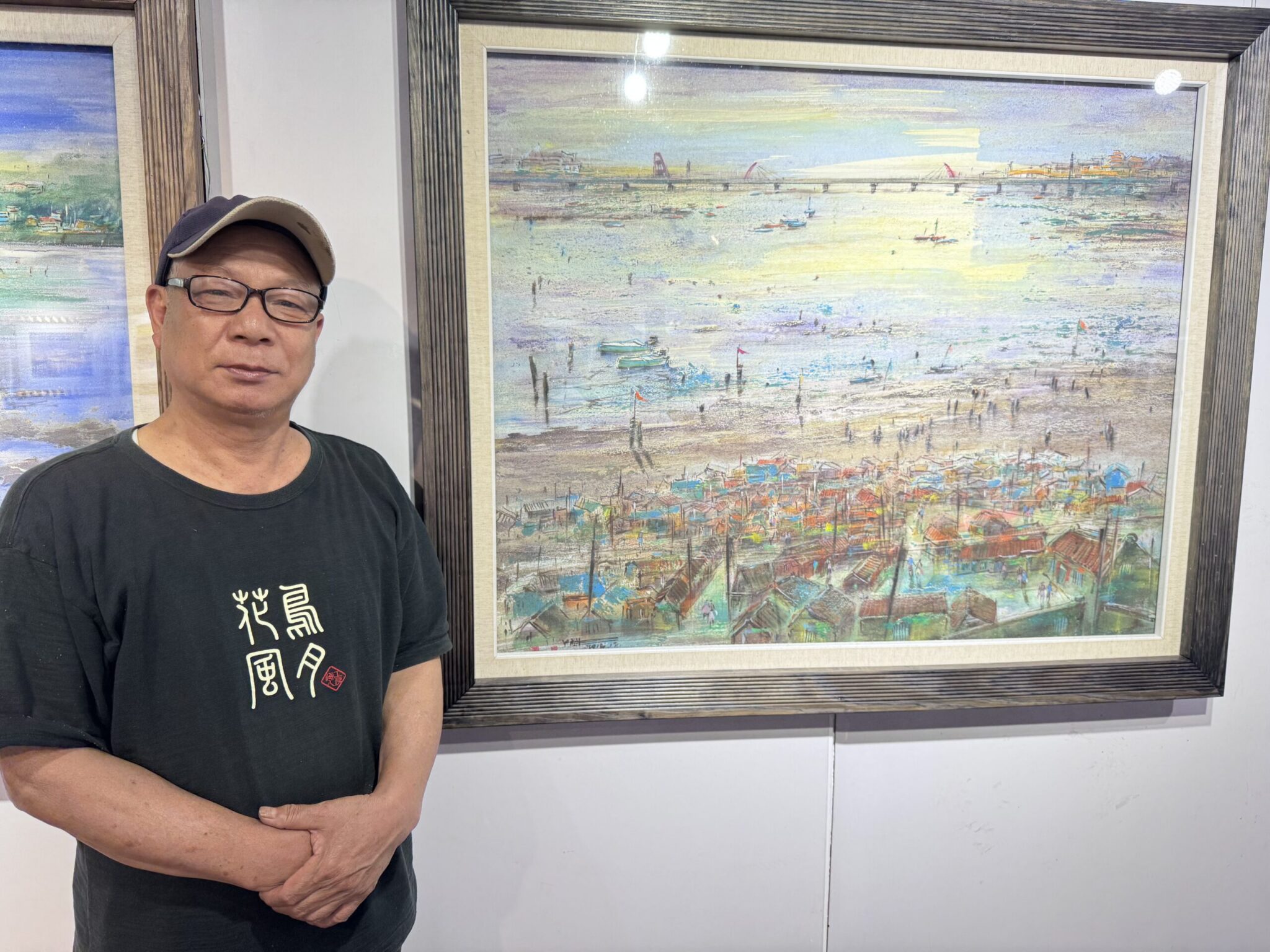 學建築設計卻愛畫畫的黃運祥,黃運祥的山光・水色厚工水彩個展・即日起在蕭如松藝術園區展出至5月11日,共展出28幅畫,今(19)日進行開幕茶會,同時即展開當場揮毫,展現他厚工水彩的魅力。