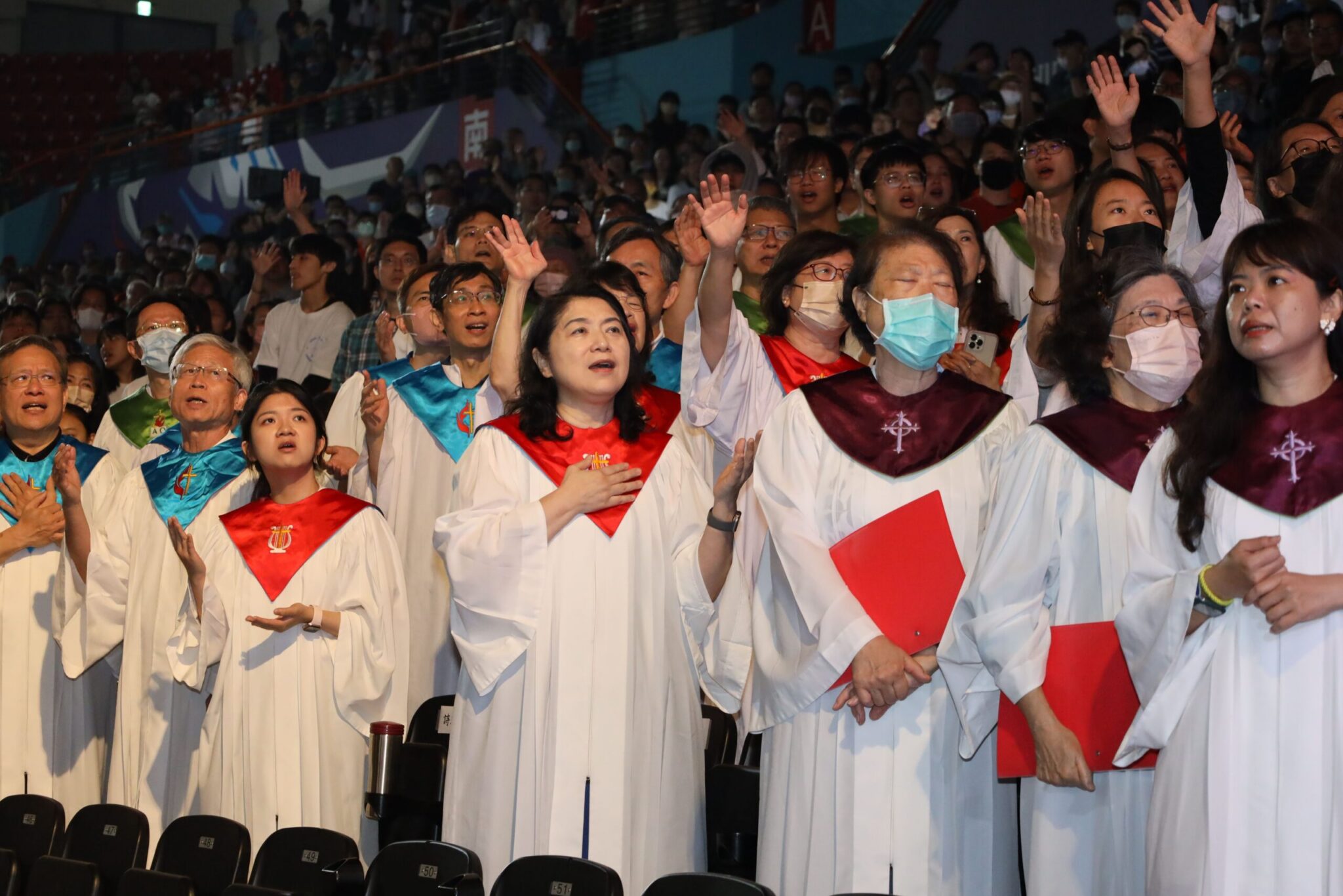 新竹基督教聯合關懷協會今(20)日上午於新竹縣體育館舉辦復活節聯合崇拜,新竹縣政府秘書長李安妤代表縣長楊文科,率領縣府團隊、一級主管出席,以地主的身分歡迎大家,並高舉雙手吟唱詩歌,為竹縣禱告,也祝福鄉親平安喜樂。