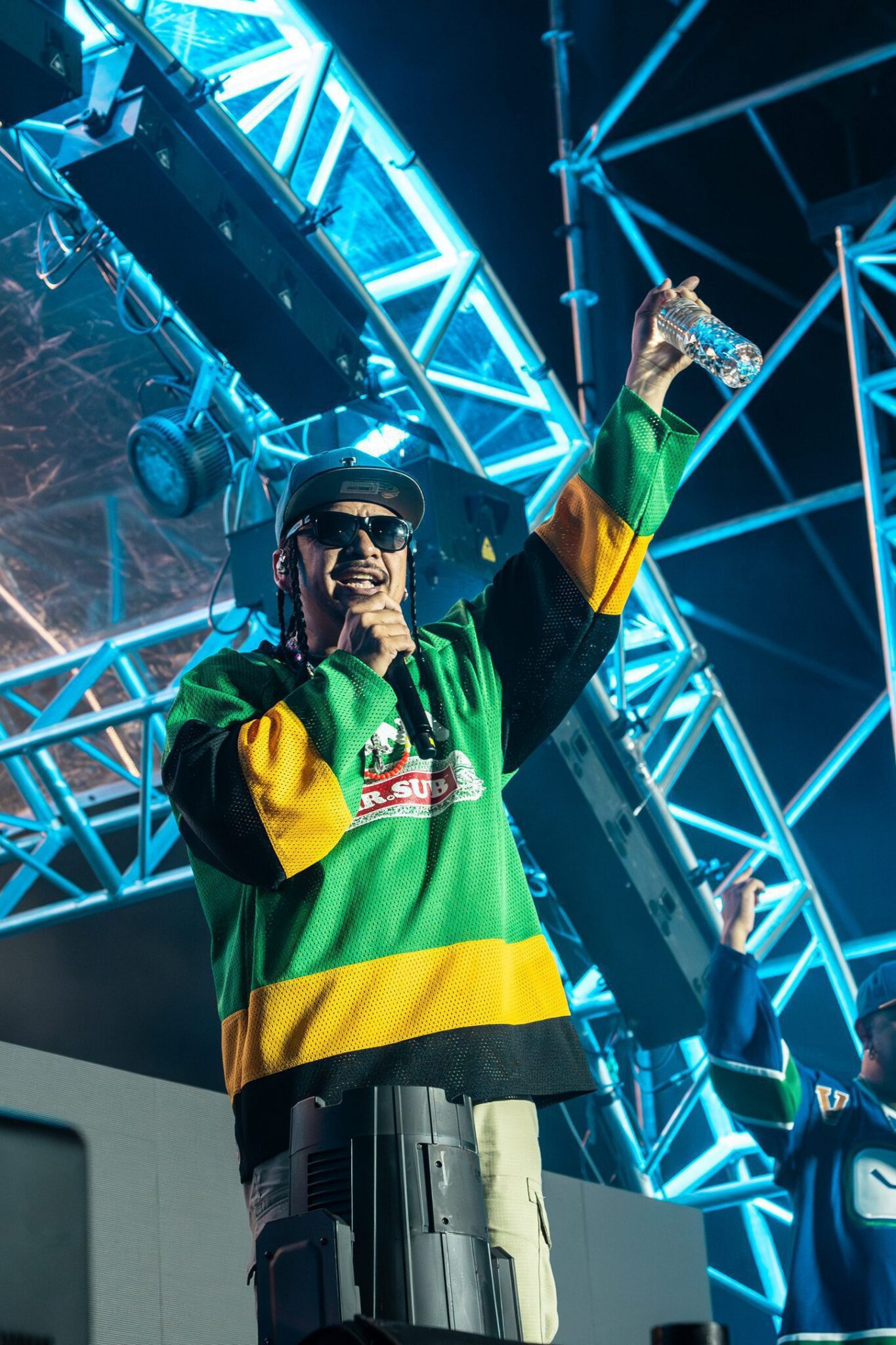 其中最受年輕人迴響的莫過於近期在亞洲各地掀起佛經style電音狂潮的NewJeansNim日進大師刷碟「禮佛」表演,只見頂著光頭、以一身結合韓國傳統服飾及袈裟的造型出場的他以佛經融合電音文化,一開場就用招牌歌曲〈Buddha Handsome〉(佛祖好帥)帶領全場樂迷嗨到「高舉拜佛手勢」欲罷不能,在狂喜氣氛下更使出「大絕〉用誦經佐以敲擊木魚帶來絕妙節奏,再穿插雙手合掌瘋狂跳舞,讓現場完全沉溺其中無法自拔!