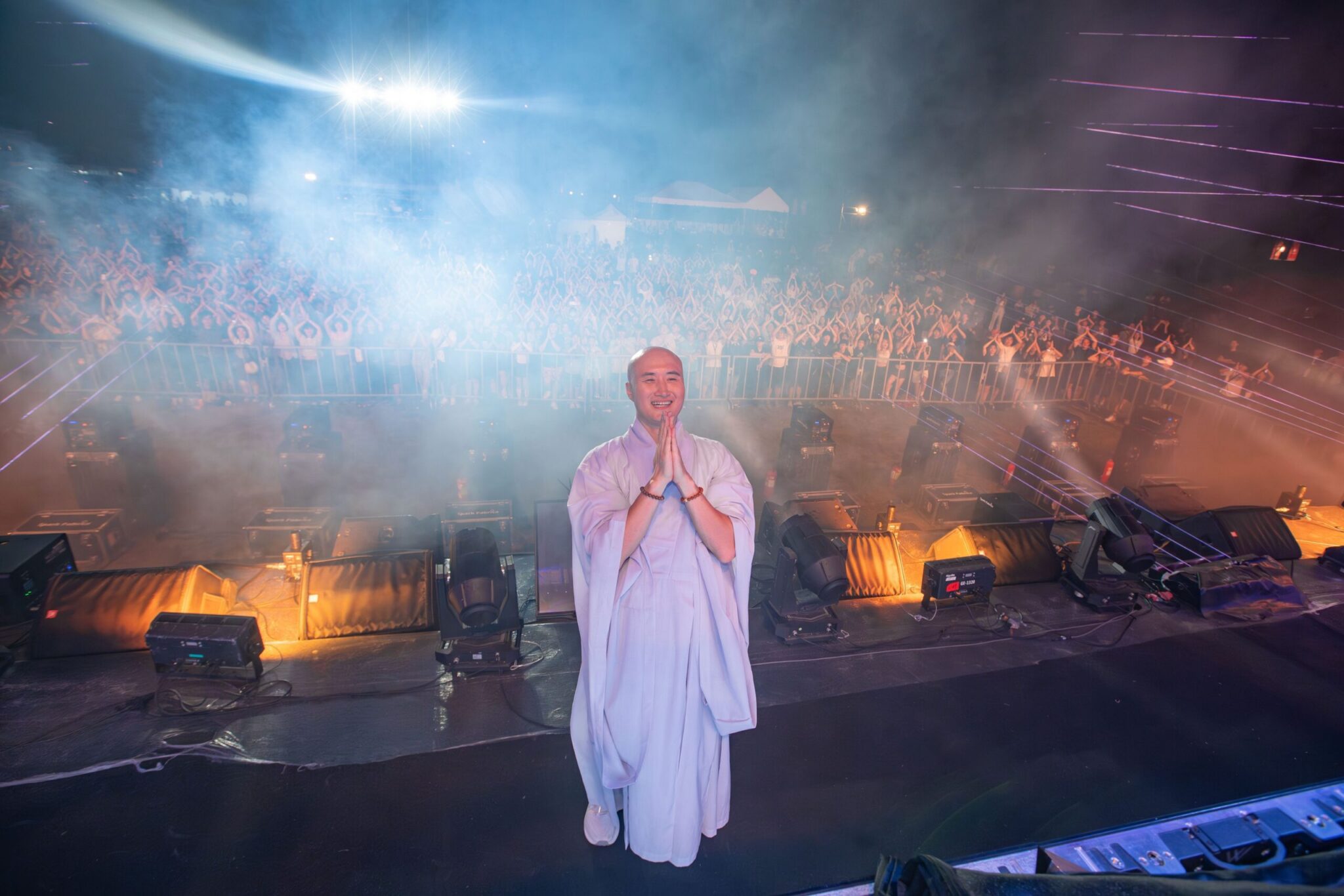 韓國爆紅的電音和尚NewJeansNim日進大師(尹成浩)初訪台東用電音「普渡眾生」,著袈裟戰袍首唱新歌 〈방하착〉要大家「菩揪hands up」!
