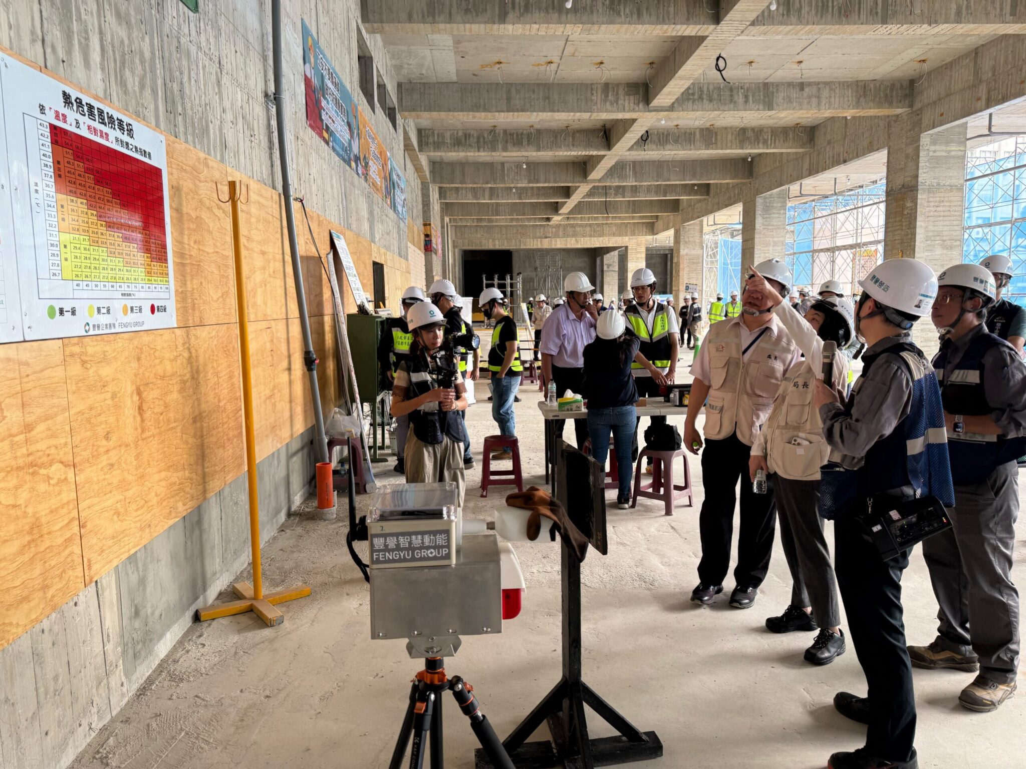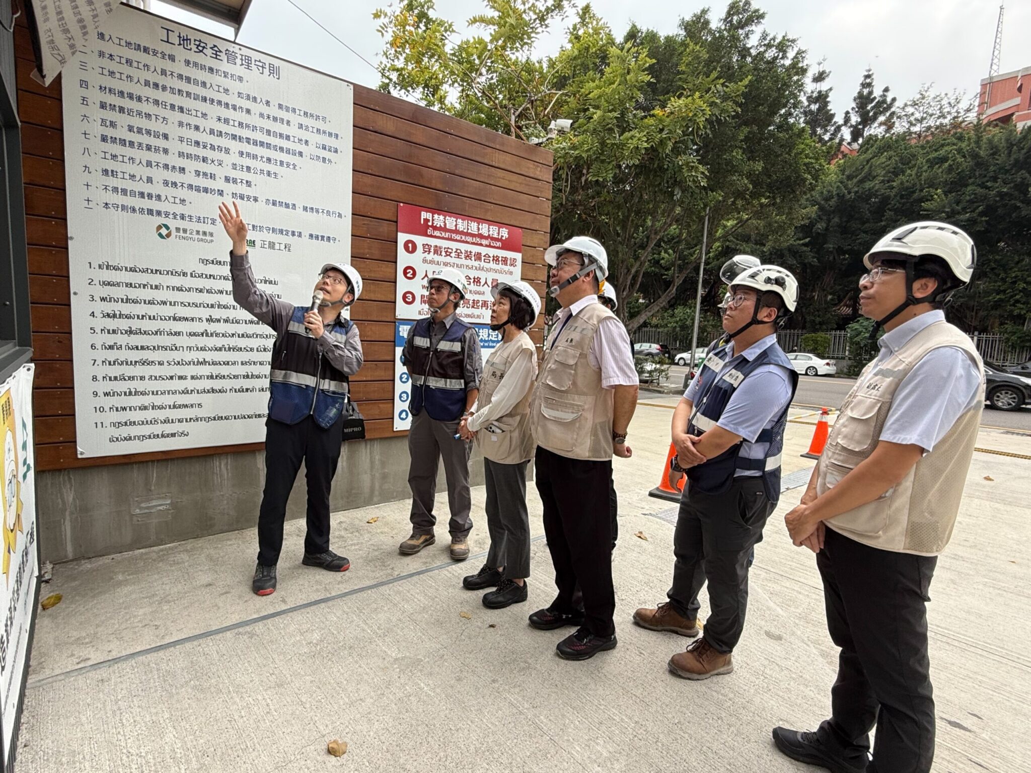 勞工局長林淑媛表示,此次觀摩會將介紹工地導入的智慧安全管理措施,透過人臉辨識系統、CCTV全區監控、熱危害警示裝置等技術輔助,強化即時監測與危害預防機制。觀摩會現場規劃四大重點主題,包括電梯井安全管制,運用AI智能技術確保作業人員須配戴安全帽及安全帶,方能開啟電梯井出入口,以降低墜落風險;懸臂施工架安全強化,透過最佳化三角支撐設置,使其與上方施工架立柱保持同一直線垂直關係,以提升整體結構穩定性,並針對低層數施工架加強斜撐配置,提高抗側向力能力;電器檢測設備演示,說明設備正確使用方式,並現場示範在無接地條件下進行檢測,以驗證設備運行是否符合電氣安全;動火作業安全管理解說及示範標準作業流程,包括作業前場地檢點、作業中監測及作業後監控機制,確保動火作業安全,降低火災及爆炸風險。