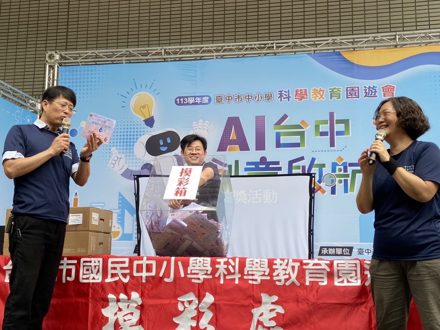 由台中市政府教育局主辦的「113學年度台中市中小學科學展覽會頒獎典禮暨科學教育園遊會」,今(26)日上午在國立自然科學博物館太空劇場前廣場盛大登場,園遊會以「AI台中 創意啟航」為主題,在科學博物館外設有125個攤位,還有多樣的科學與創客教育相關趣味闖關活動,並有「自造教育及科技中心」的體驗活動,完成闖關者可參加摸彩,獎品豐富。