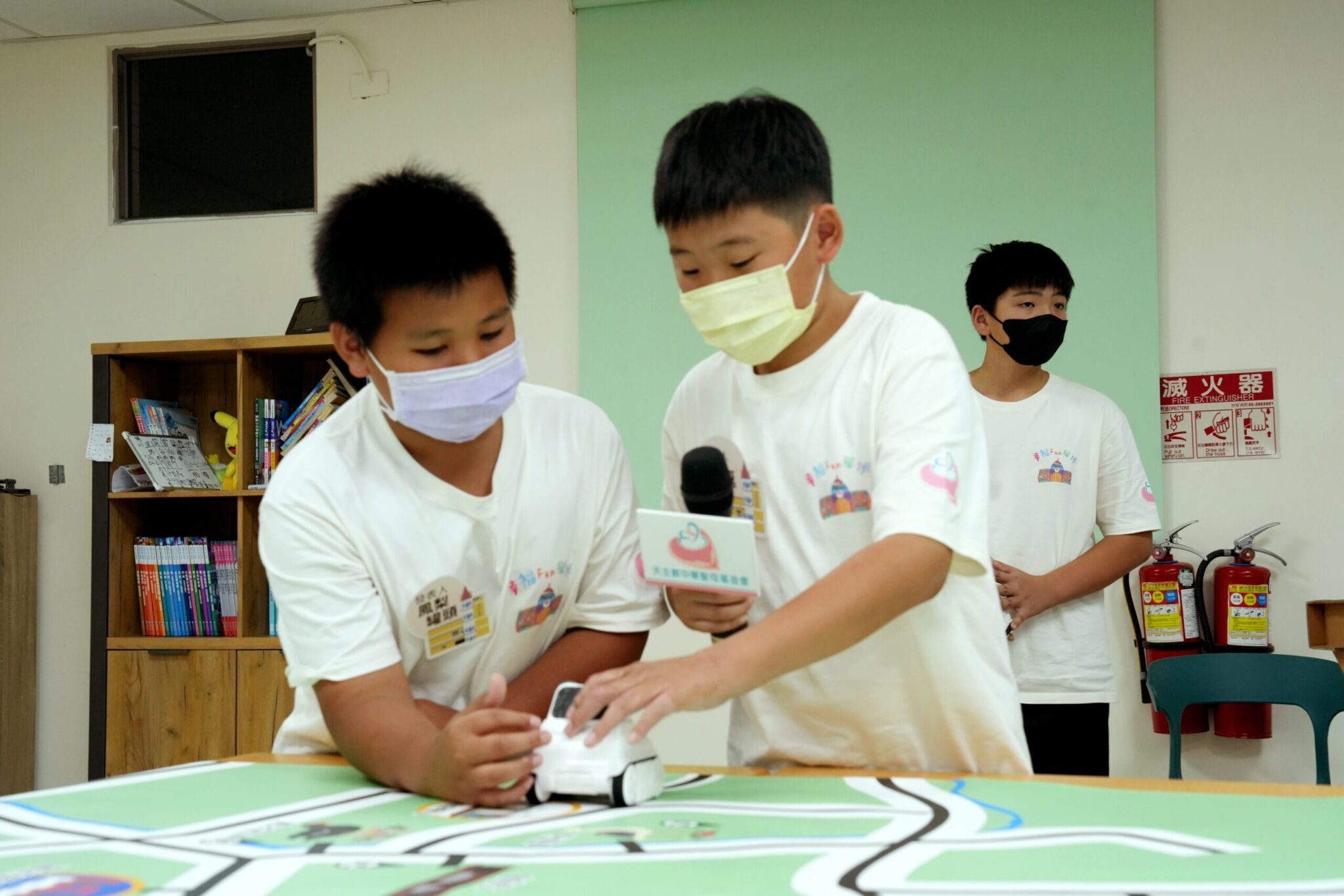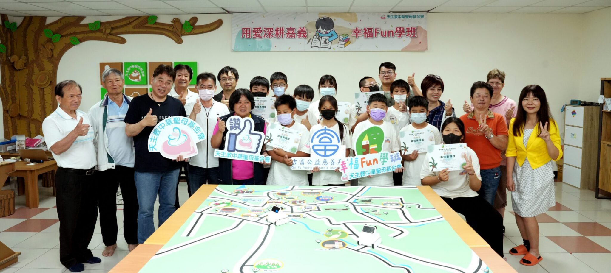 天主教中華聖母基金會舉辦《眼中筆下─與大槺榔同行》偏鄉兒童課輔班成果發表會,展出朴子、鹿草課輔班高年級孩子歷經九個月、89小時課程的學習成果。這是孩子們首次接觸機器人,從設計動畫、撰寫程式,到操作機器人在親手繪製的社區地圖上行走,全程都是嶄新的挑戰。他們不只培養了資訊素養與邏輯思維,更學會了面對困難的耐心與勇氣。擔任課程指導的喬智創意機器人粘振國老師讚許道:「一般機器人走的是方格地圖,孩子們這次畫出的地圖路線彎曲、毫無規則,設計程式時需不斷調整角度與時間,非常考驗耐性與邏輯力。」