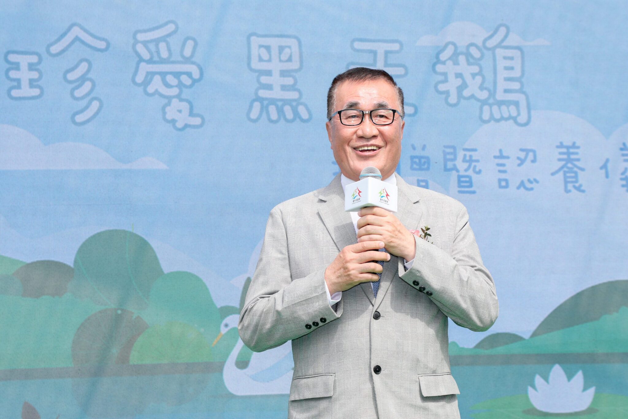 盧市長表示,台中市近年人丁與動物皆興旺,自兩年前首批黑天鵝入住秋紅谷以來,園區陸續成功孵化出多隻鵝寶寶,如今黑天鵝家族已壯大至15隻。為讓這些「鵝」子、女「鵝」有更好的成長環境,中市府今日與台北市政府、台北大學、東海大學正式「結為親家」,三方皆在動物保育與生態教育上表現優異,市府對此次合作深感放心,也相信未來彼此會因「鵝」子、女「鵝」建立更密切的互動。她也盼他們在新家健康成長,繼續孕育更多生命,並推動生態保育向下扎根。
