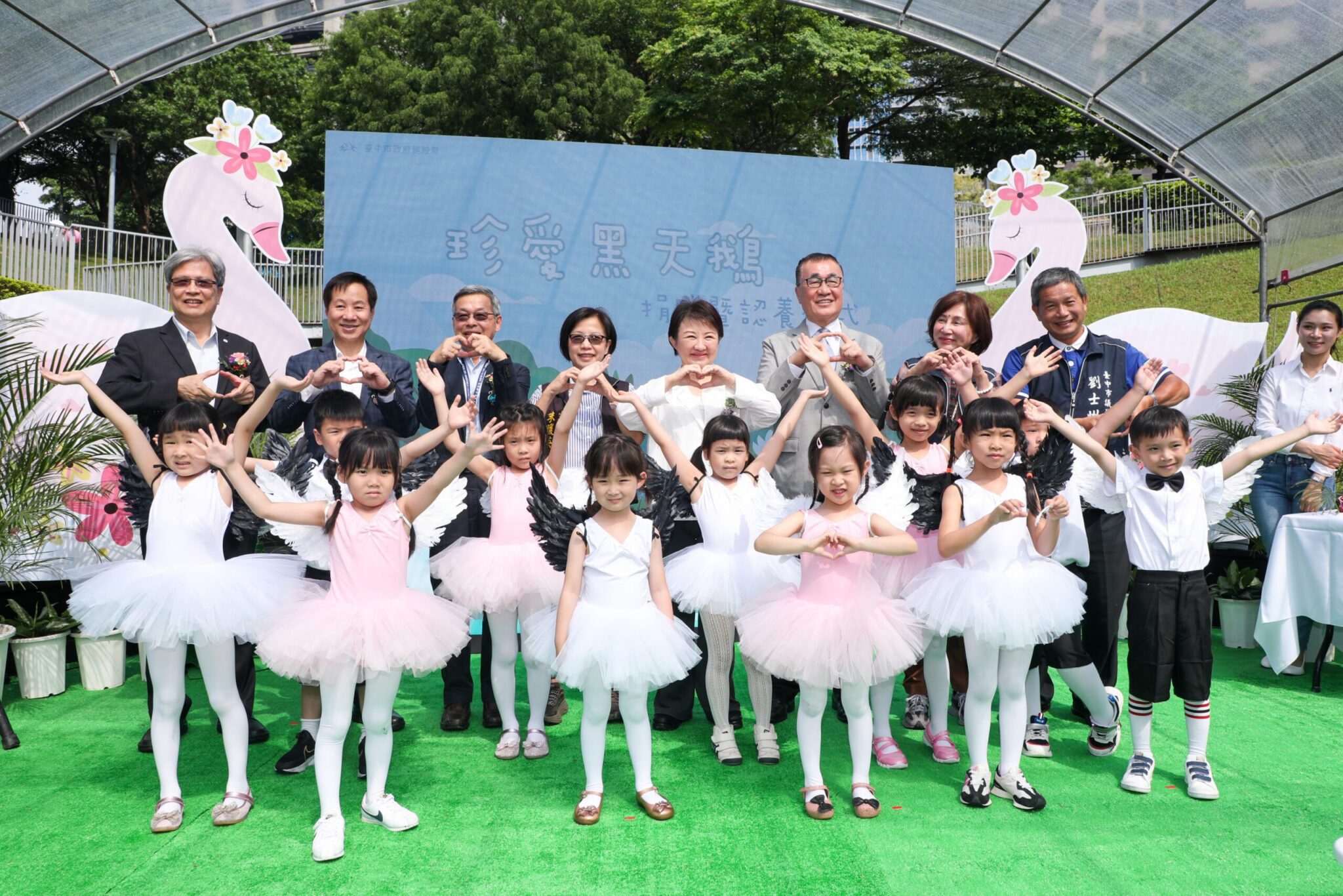 兩年前進駐秋紅谷的兩對黑天鵝,在市府的細心照料下順利繁衍,如今家族成員已擴增至15隻。市長盧秀燕今(28)日親自主持「黑天鵝贈養儀式」,將6隻黑天鵝分贈成功媒合的單位,包括台北市政府、台北大學與東海大學均各獲一對,包括台北市副市長李四川、台北大學校長李承嘉及東海大學校長張國恩皆出席迎接,盼透過此次贈養,共同打造更多友善棲息環境,推動生態教育,讓更多民眾有機會親近黑天鵝、認識自然生態之美。