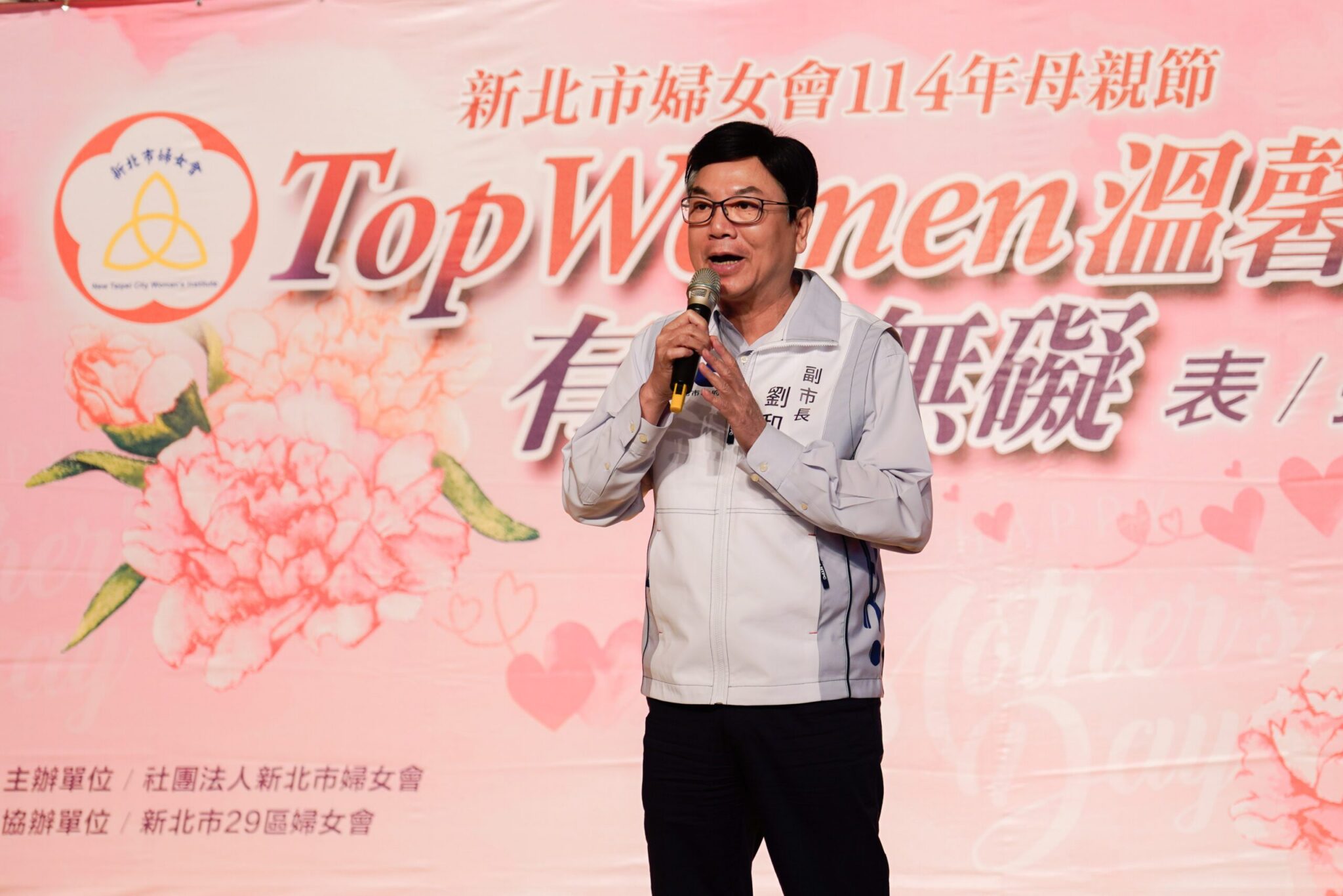 新北市副市長劉和然代表侯友宜市長到場祝賀。他表示,新北市將近405萬的人口裡,有51.5%是女性,女性撐起半邊天。現今社會以小家庭居多,依據統計資料顯示,112年以核心家庭佔31.34%,三代同堂的家庭則為10.42%,但在10年前三代同堂的家庭有15.24%,顯示10年來家庭生活型態有很大的轉變。