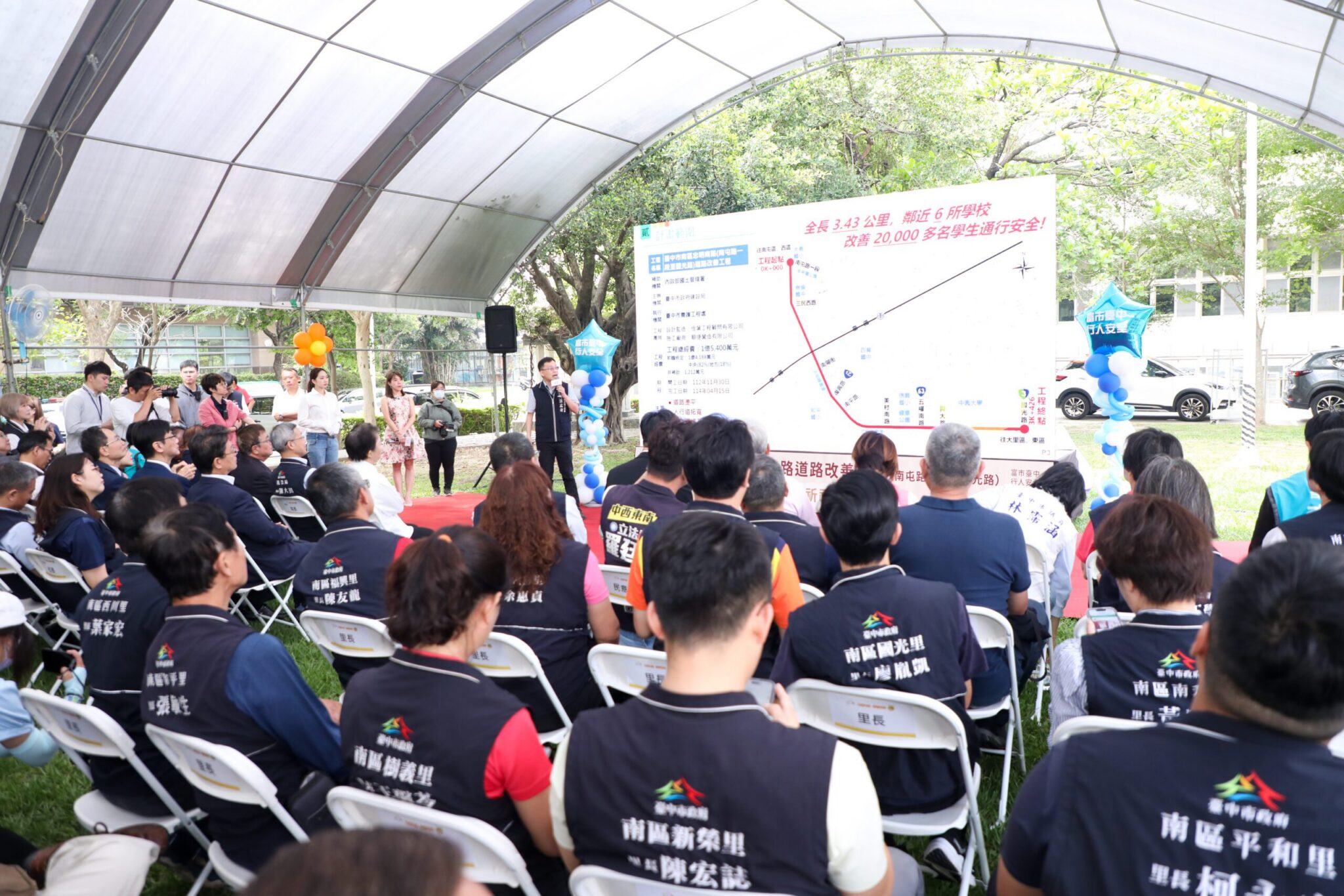 今日活動,盧市長、市議員林霈涵、陳雅惠、建設局長陳大田、台中市養護工程處長白玨瑛、內政部次長董建宏、中興大學校長詹富智、和平國小校長郭盈師、大勇國小校長黃志偉、崇倫國中校長賴朝榮、四育國中校長魏志華、信義國小校長沈俊達等人皆到場,立法委員羅廷瑋、市議員李中服務處也派員共襄盛舉。