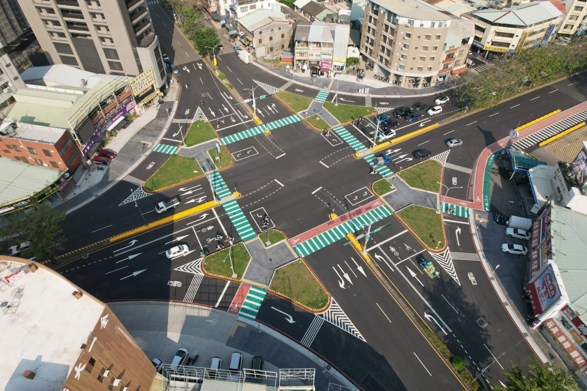 建設局提醒,此次為提升行人安全及行車順暢,庇護島加設防撞軟桿,中央分隔島及槽化島也汰換反光導標,以強化視覺辨識度,請駕駛人行經路口應減速慢行,並注意車前狀況,共同維護行車及行人安全。