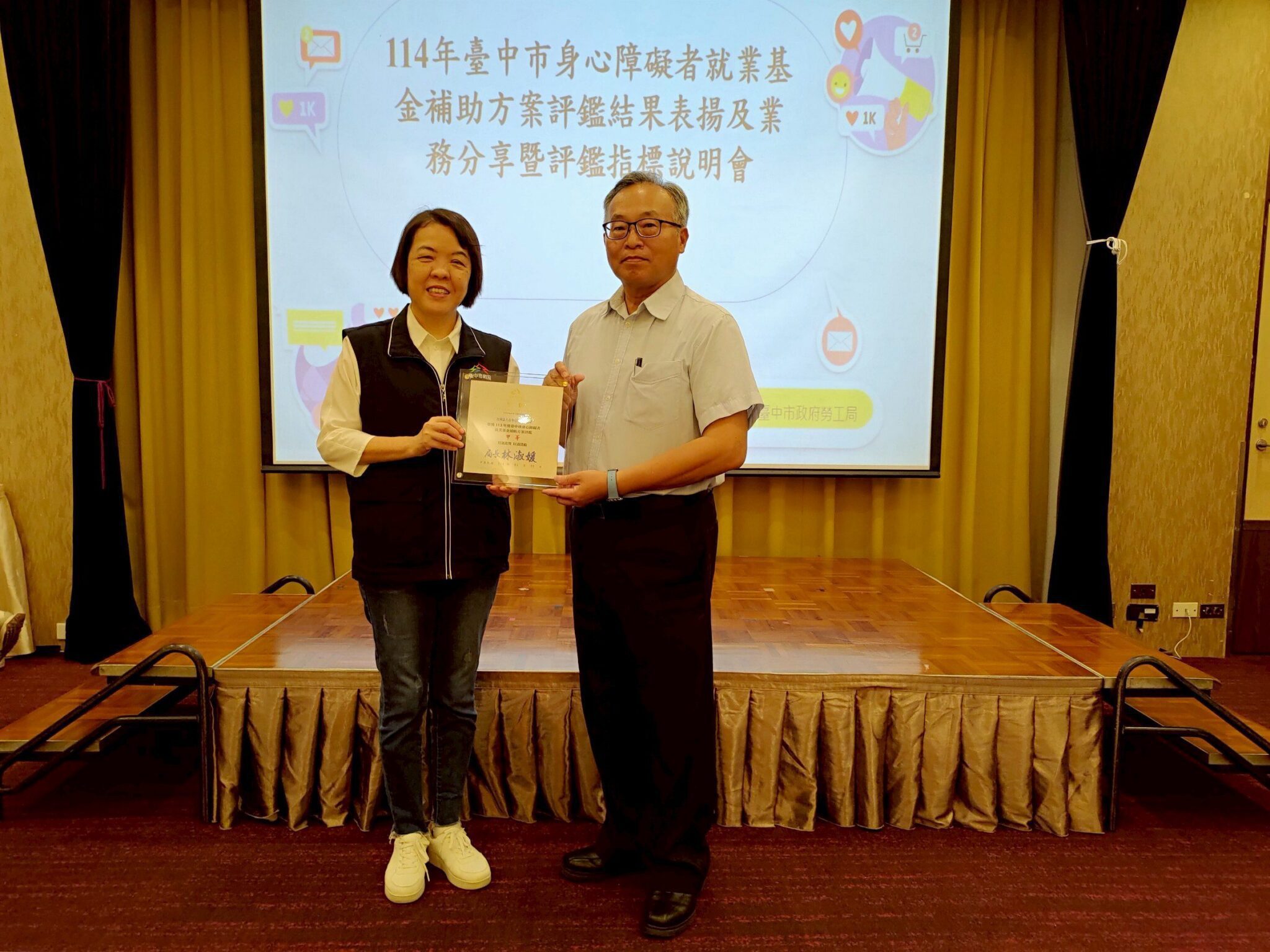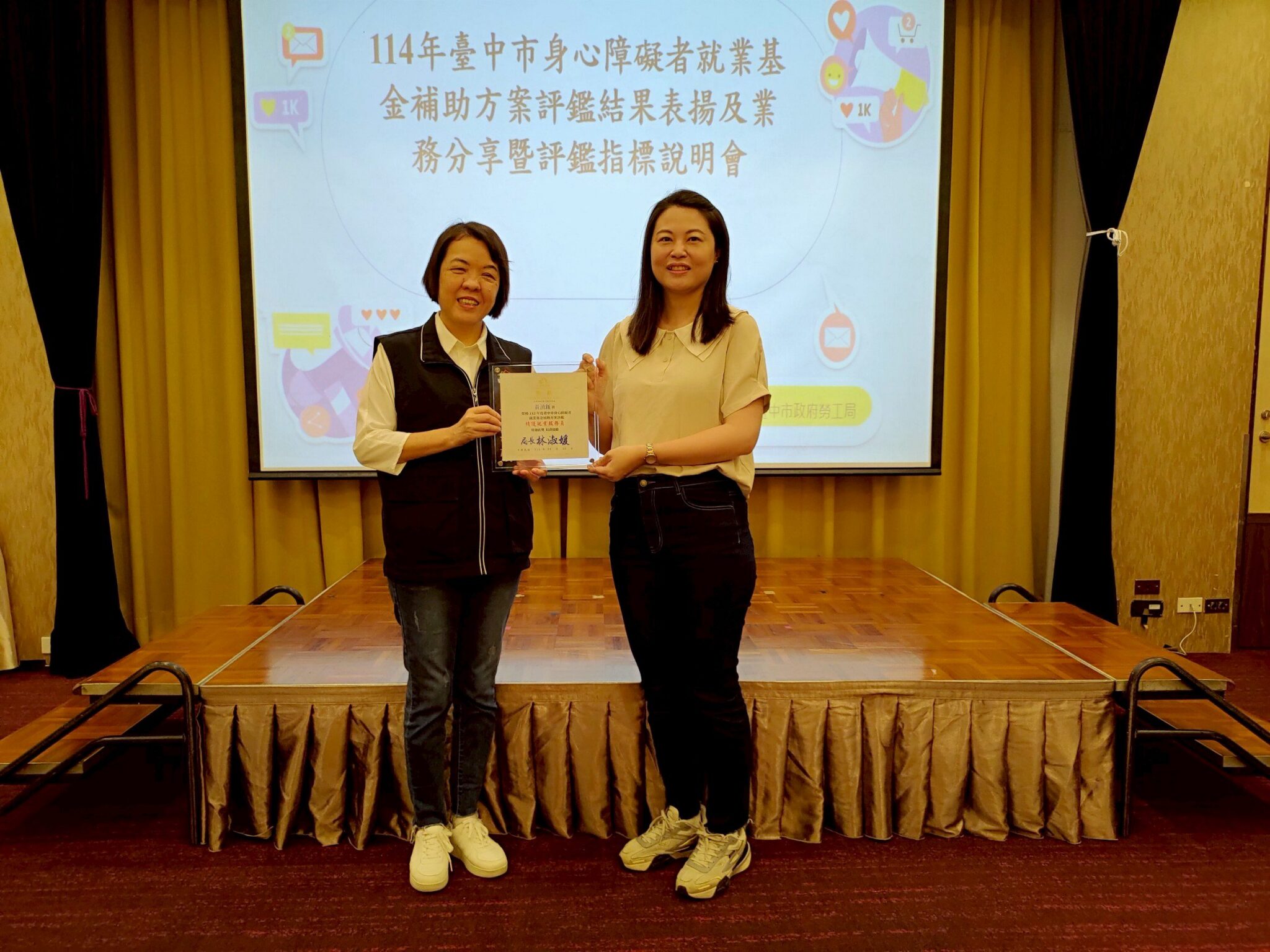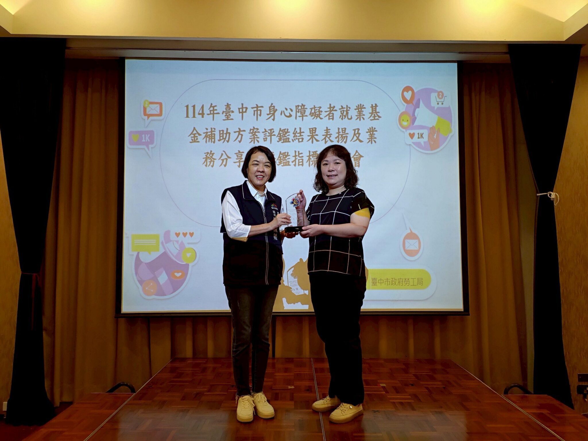 台中市政府勞工局為提升身心障礙者就業服務品質,落實就業平權與社會共融,今(30)日在全國飯店表揚113年度獲評鑑優等及甲等的身心障礙者就業服務團隊及4位績優就業服務人員,勞工局長林淑媛親自頒發獎座,對第一線提供就業服務夥伴表達高度感謝及敬意。