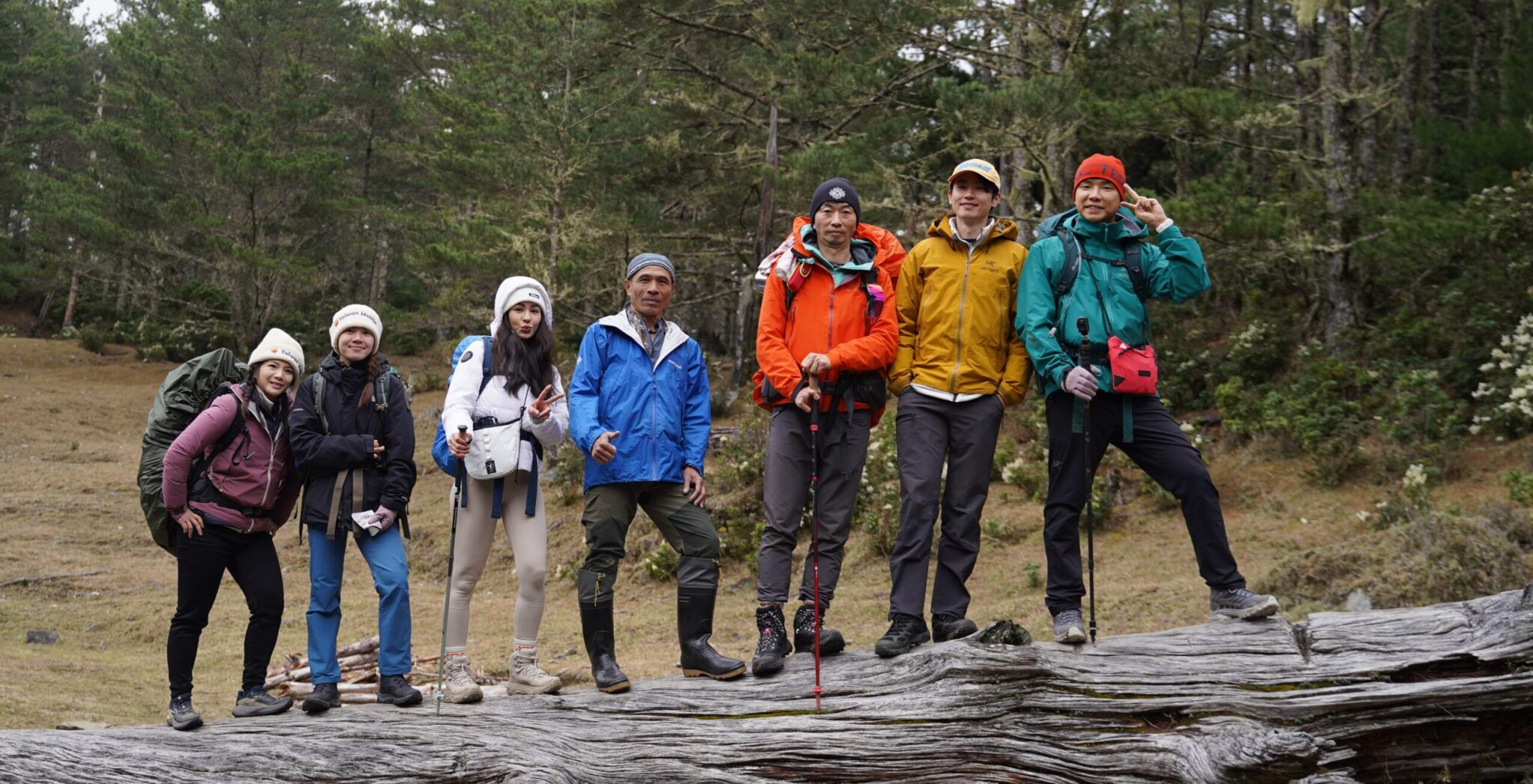 (左起)阿傑黃仕傑、雷艾美、登山家Hong Trinh Geye、登山家詹喬愉、楊盛堯MAX、卓福星嚮導、八弟上山前合照 照片提供:三立電視