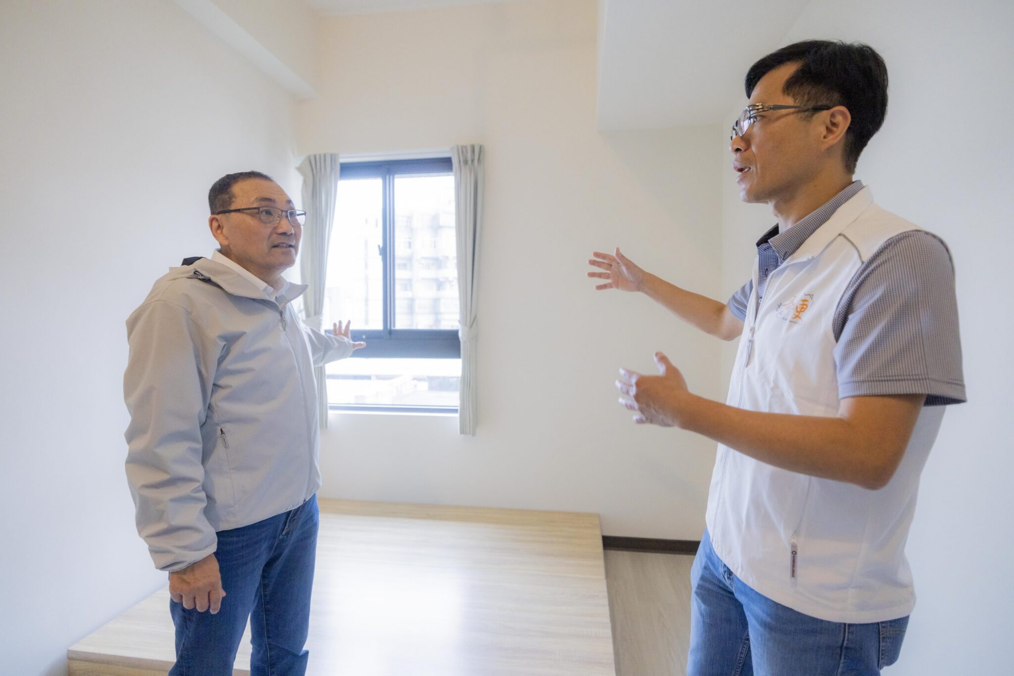 侯友宜表示,都更戶雖有租金補貼,但弱勢家庭還是無法租到適當房子,尤其,海砂屋住戶常需急迫性搬遷,這兩類都更戶搬遷是目前最大挑戰。因此市府啟動中繼宅政策釋出都更回饋空間作為住宅,優先提供弱勢族群租借,此次於三重基地共提供35戶不同住宅房型,包括三房型16戶、二房型10戶、一房型9戶。