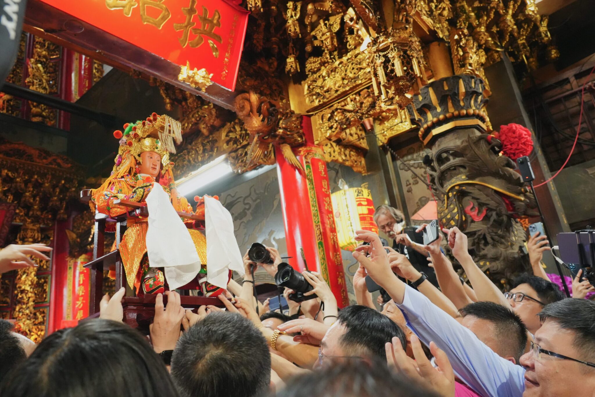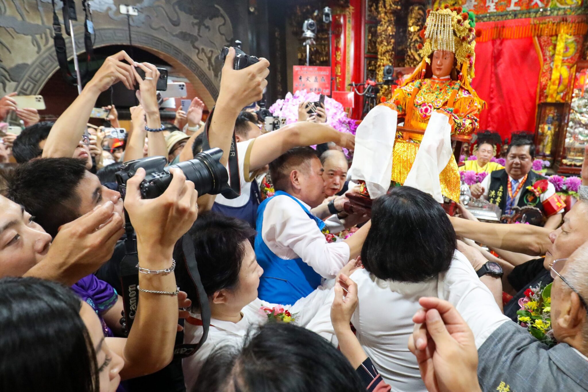 全台矚目!苗栗拱天宮白沙屯媽祖10天9夜徒步北港進香之旅今(2)日凌晨正式啟程,橫跨苗栗、台中、彰化、雲林4縣市,全程約400公里,預計5月11日回宮。市長盧秀燕昨(1)晚前往拱天宮參拜祈福,並與苗栗縣長鍾東錦、雲林縣長張麗善及拱天宮主委洪文華一同恭請媽祖登轎,同時祈求媽祖庇佑台灣國泰民安、風調雨順,也祝福進香活動平安順利、圓滿成功。