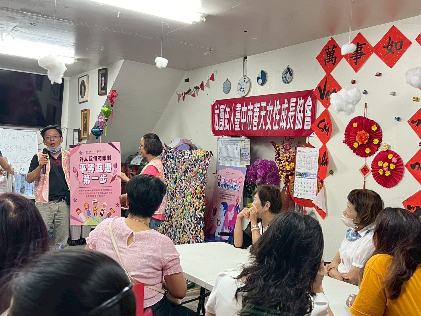 東勢地政事務所表示,市府與新住民團體春天女性發展協會達成異業結盟,由地所解決新住民房地產方面法令問題,協會則提供語言翻譯服務,在過去一年長期支援志工至東勢地所協助諮詢,頗受在地新住民好評。主任陳應欽特別於母親節前夕率同仁至春天女性發展協會聚會,向協會表示感謝,讓許多新住民了解到房地產除了性別平等繼承外,配偶間於婚姻關係結束後,還可以主張剩餘財產差額財產分配請求權節省遺產稅,更讓還未取得我國國籍的新住民了解到,外國人想要在我國取得房地產,必須以我國人民能在該國享有同樣權利為限。