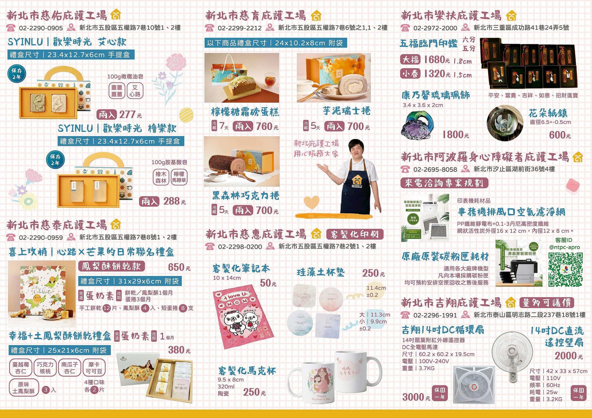 新北市庇護工場網路商城現正推出「2025.母愛獻禮」限定活動,精選15家庇護工場推出多重優惠,除了有新戶關注禮20元,更加碼單筆消費滿520元現折100元,數量有限,要搶要快。即日起至5月13日,只要在單一工場下單滿1200元,即享有免運優惠,多重優惠。就是要您買的開心、讓媽咪笑的開心。
