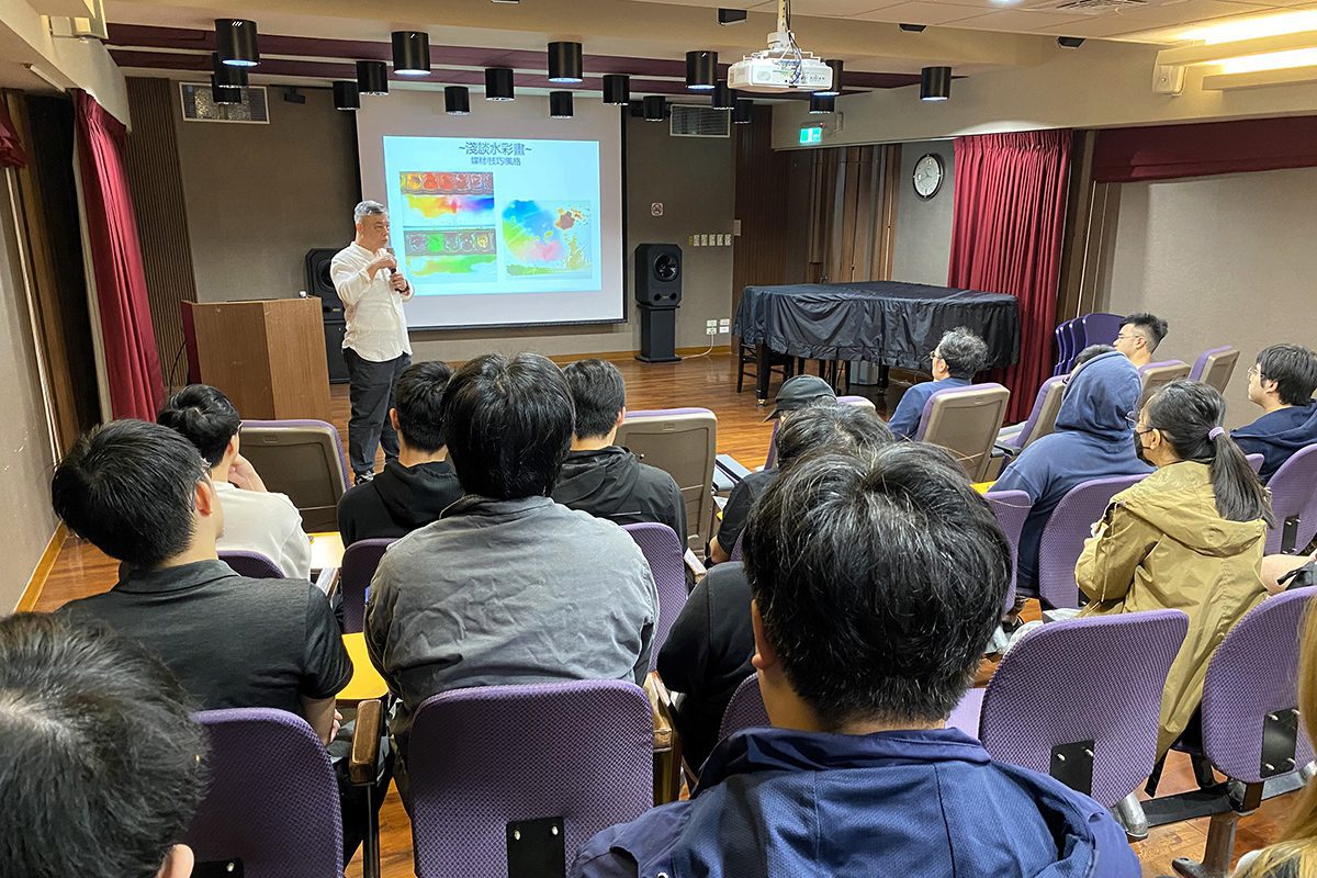 國立臺灣海洋大學藝文中心邀請藝術家葉春新舉辦《水色意境》水彩創作展,並於日前辦理藝術講座暨開幕活動,吸引許多校外熱愛水彩藝術師友前來欣賞。基隆土生土長、享譽水彩畫界的葉春新老師,與海大師生分享長年投入水彩創作的心路歷程與技法,如展名所揭示,葉老師透過顏料與水之間的濃薄和乾溼水分漸層詮釋地方之美,讓觀者透過水與色的轉譯認識北臺灣風景,展覽至5月22日止,歡迎蒞臨海大圖書館一樓的藝文中心展示空間觀賞。