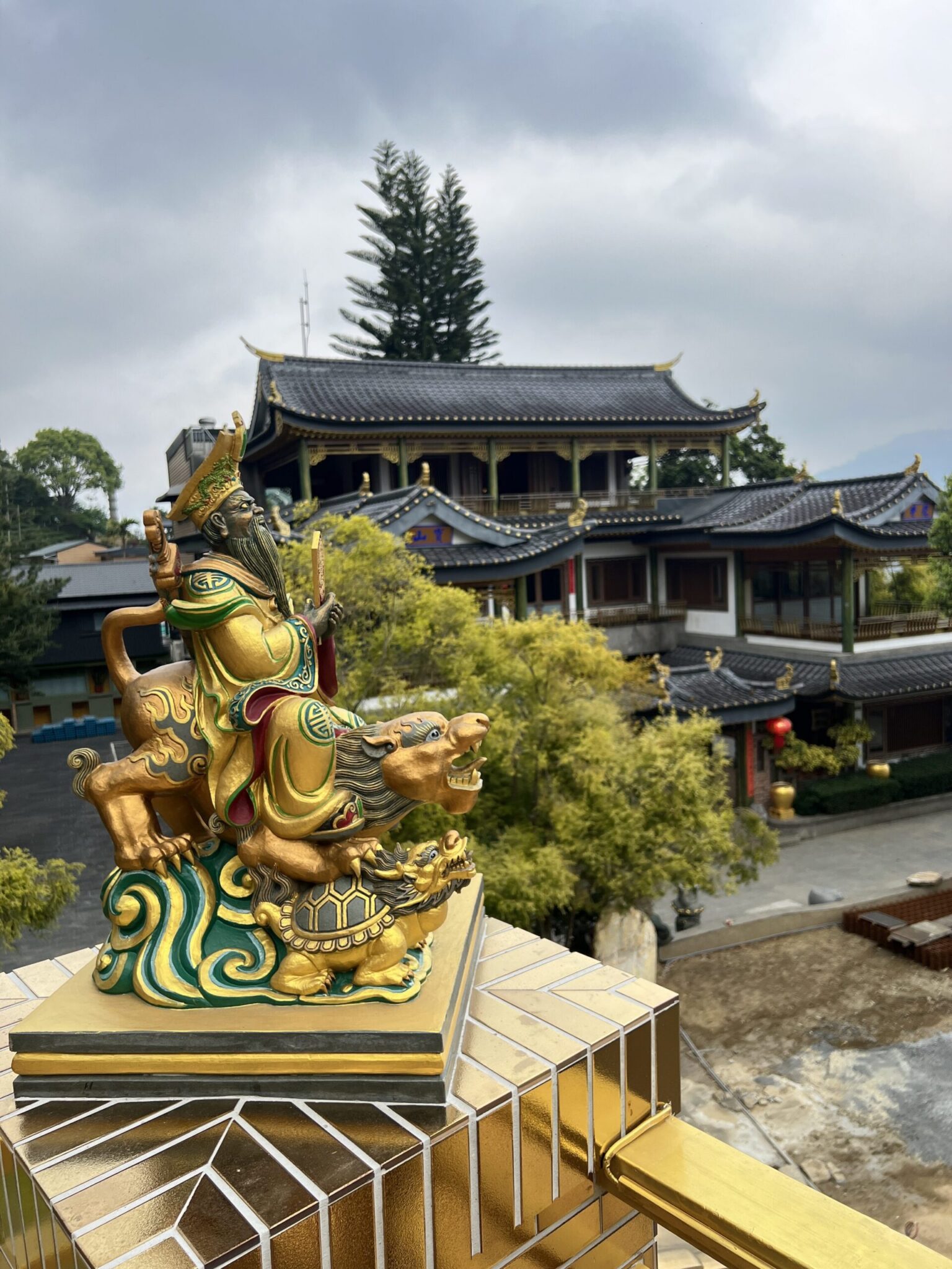 歷經多年辛苦經營與虔誠實踐,終於於翠峰之間完成這座融合日式與唐式建築風格的「龍王金殿」。殿宇環山而建,氣勢雄偉、金龍環繞,遠觀如日本金閣寺,近賞則富有東方禪意之妙。山嵐變化萬千,彷如置身蓬萊仙境,是台灣許多人朝聖與靜心修持的聖地。