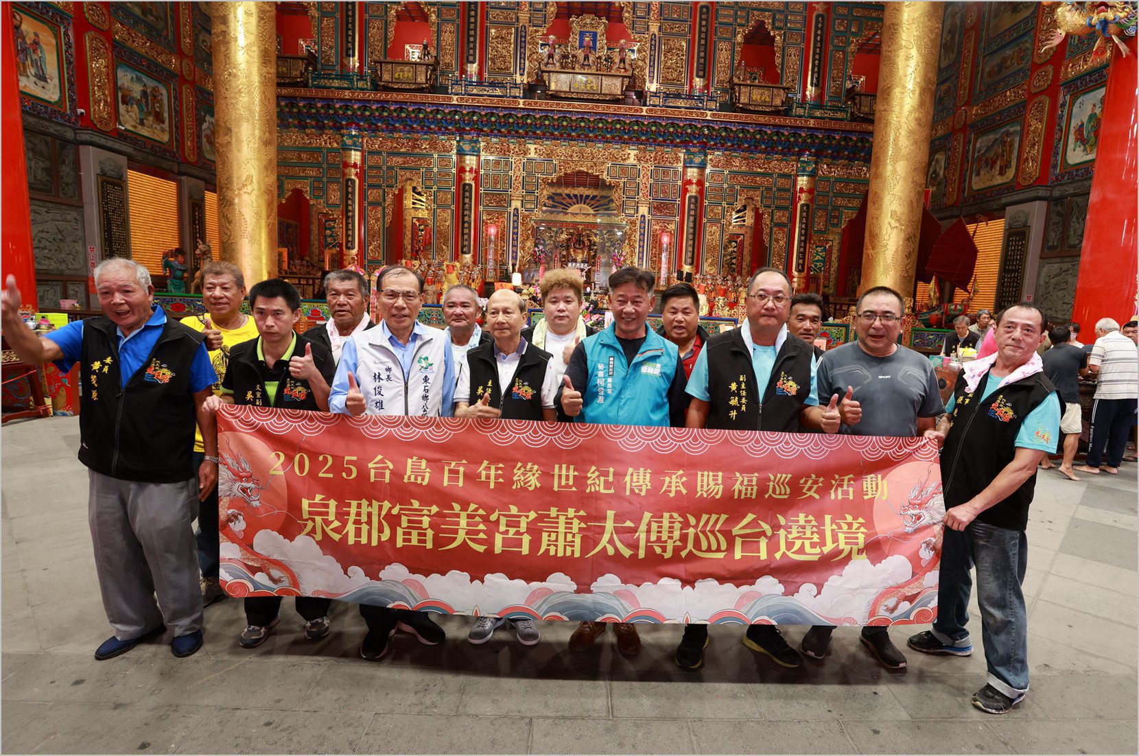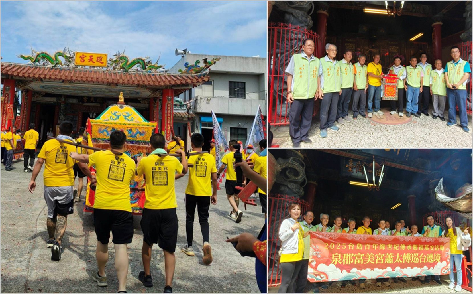 北港新街巡天宮的主祀神明就是蕭太傅,相傳廟中金身在光緒年間就雕塑完成,只是有很長一段時間都奉祀在何地先生家中,直到1967年北港的信眾王頂枝等人發起集資蓋廟,才有了如今的巡天宮。在得知泉郡富美宮蕭太傅金身將到訪,巡天宮的幹部執事們便總動員熱情接駕,甚至請出廟中神尊與蕭太傅金身一起拍照合影,將難得的一幕紀錄下來。