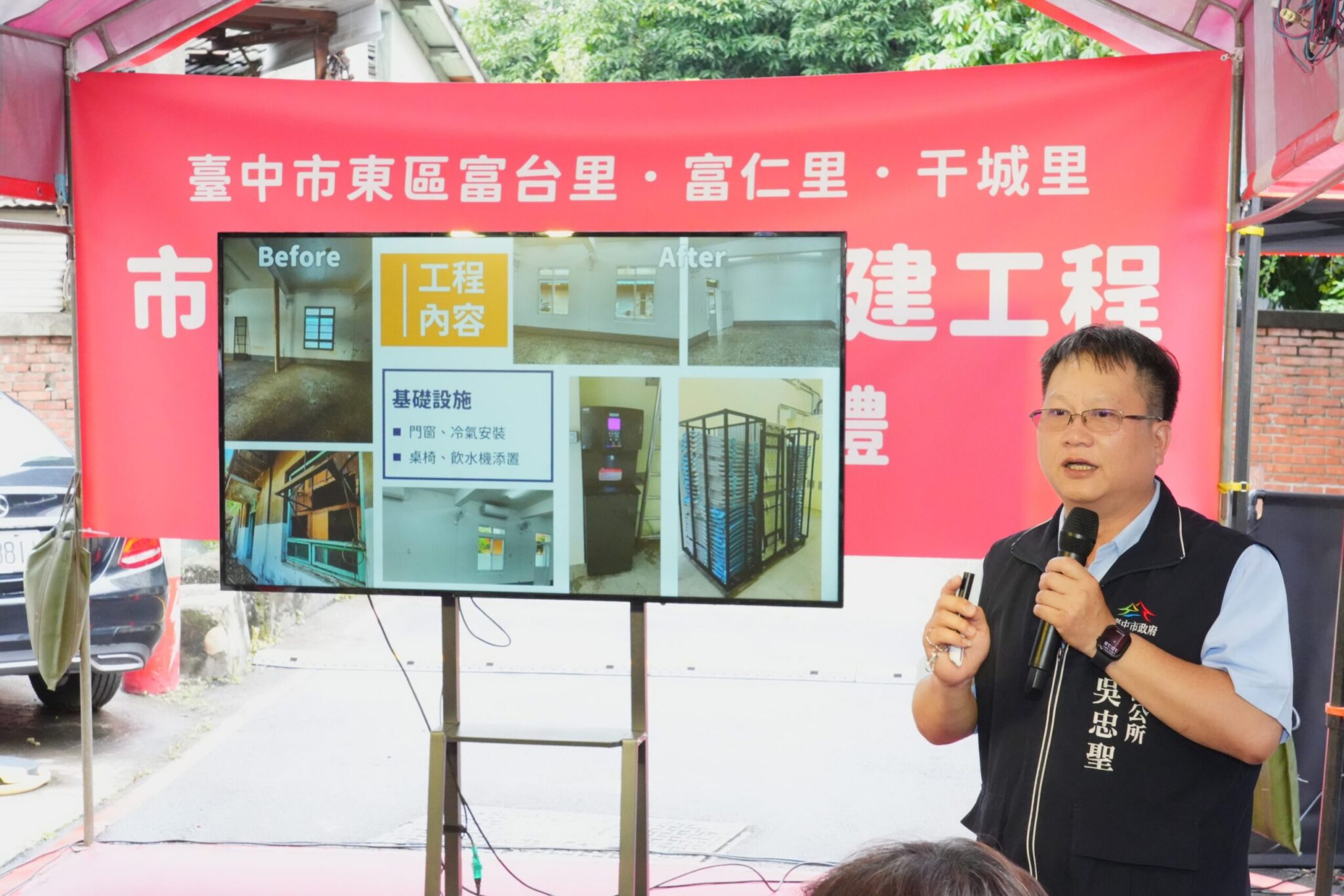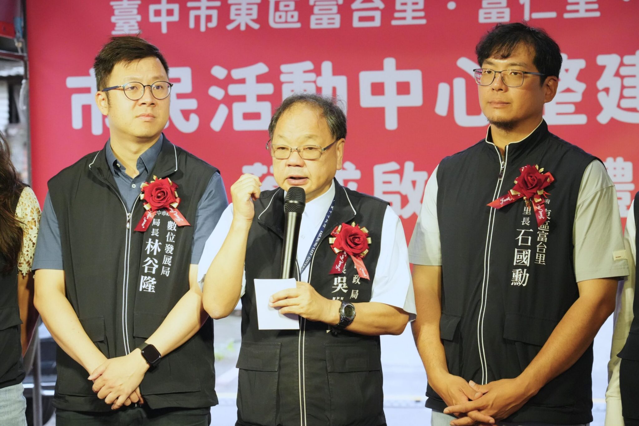 東區區公所說明,市府近年積極推動東區各項建設,除今日啟用的東區富台、富仁、干城里市民活動中心外,振興里市民活動中心也於今年1月啟用。交通方面,大智路打通、建成地下道填平、立德地下停車場及泉源糖廠停車場啟用,紓解地方交通瓶頸及停車需求;另台中公園一期好宅及恊園好宅已啟用,台中公園二期好宅及干城好宅持續推進中,其他重大建設包括東信派出所、樂業國小附設幼兒園校舍等,皆已陸續完工,逐步帶動地方發展,打造更友善、宜居的幸福城市。