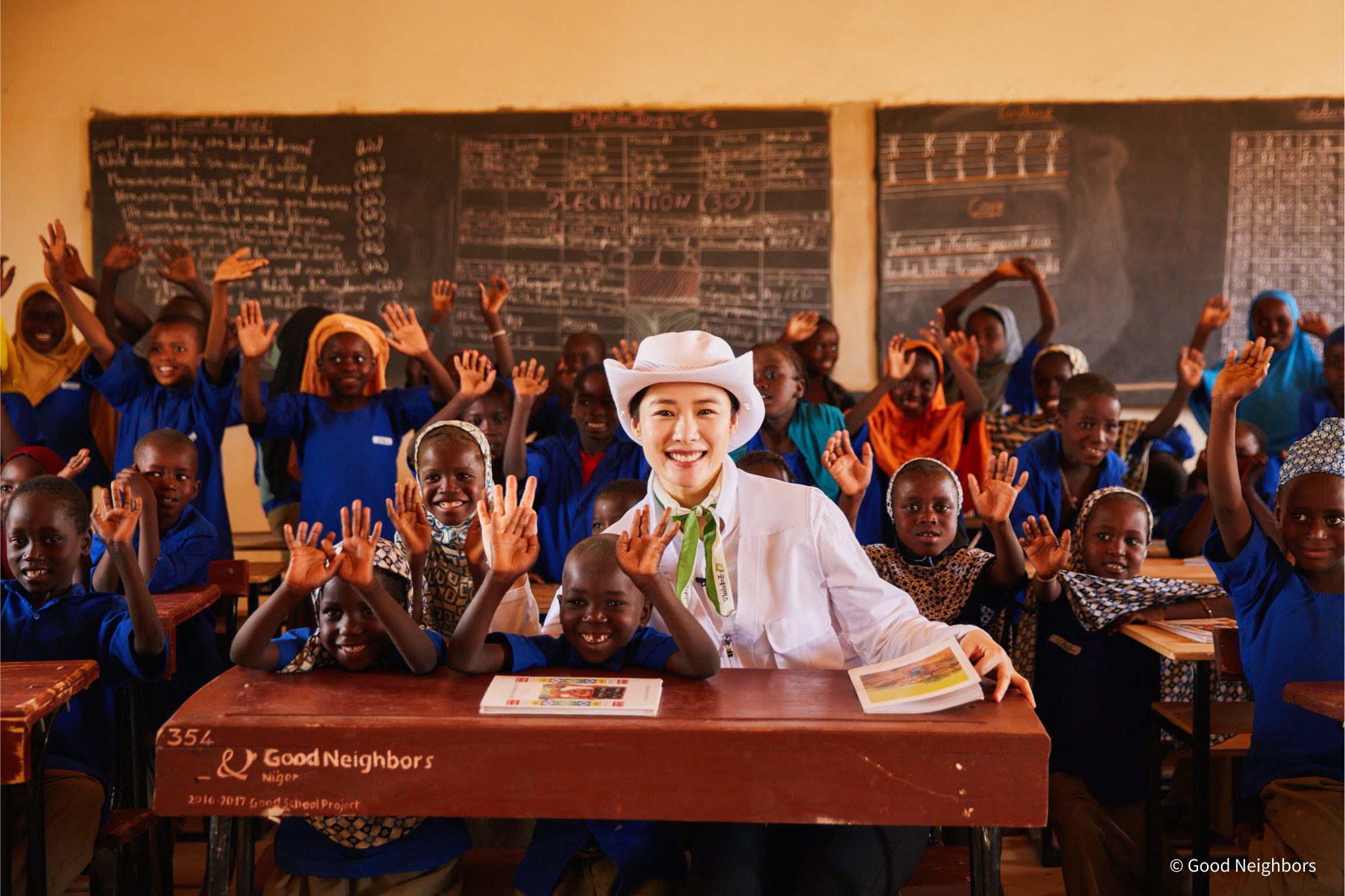 金賢珠這15年擔任好鄰居全球公益大使的期間,曾多次與好鄰居同仁一起前往非洲、尼泊爾等地區探訪,最令她難忘的莫過於2015年曾帶著物資前往尼泊爾去探視大地震災後的家庭及兒童們,看到許多孩子們無助的眼神,感到無比心疼的金賢珠表示:「當我看到生活在那樣艱苦環境中的孩子們,仍然對我露出無比真誠的微笑,我的心就被治癒了。想貢獻一己之力去回饋和分享,給了我活下去的力量。」這個過程讓她感受到幸福和生命存在的意義,更讓她體會自己要先幸福,才能為身旁的人帶來幸福,金賢珠更想把這份心意推廣給有能力幫忙的社會大眾及粉絲,並表示:「只要有心任何人都可以分享愛心,因為這是通往幸福最簡單的道路,推薦大家一起嘗試!」