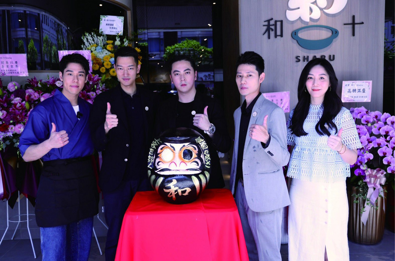 周予天(左起)國興集團張哲銘、十承十集團執行長林士騰、執行董事黃威廉、幕僚長李欣穎共同為日式火鍋舉行開幕 照片提供:和十Shabu
