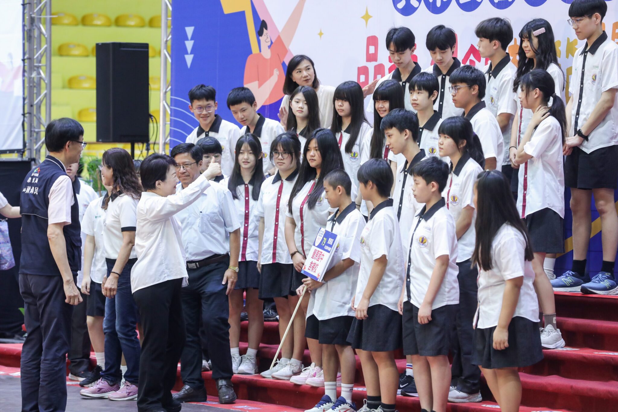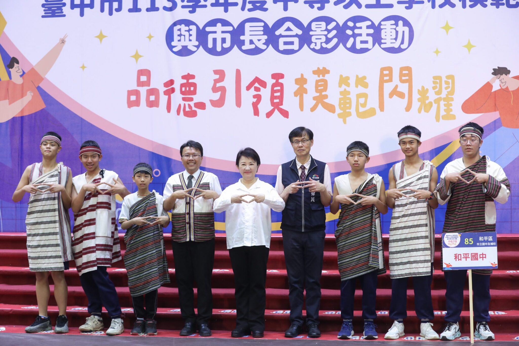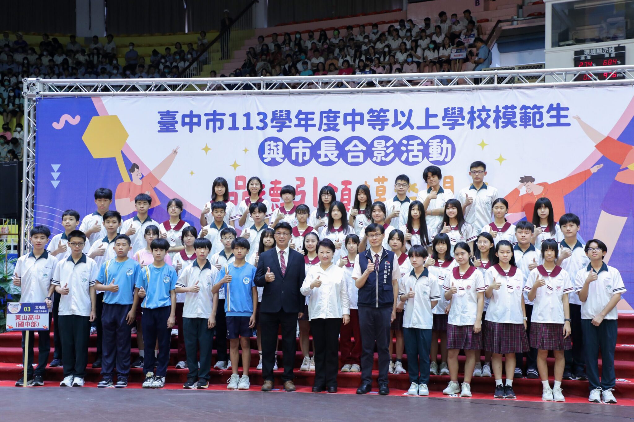 台中市政府教育局今(9)日在台灣體育運動大學表揚113學年度中等以上學校模範生共5,301名,由市長盧秀燕、教育局長蔣偉民與模範生一起合影。盧市長合影時對學生提出的各種姿勢,通通配合到底,現場氣氛俏皮、熱鬧又溫馨。盧市長表示,模範生不僅學業優異更具備良好品行,能從眾多學生中脫穎而出實屬不易,她肯定學生的努力與優秀表現,相信在場每位模範生的家人、師長都以他們為榮。