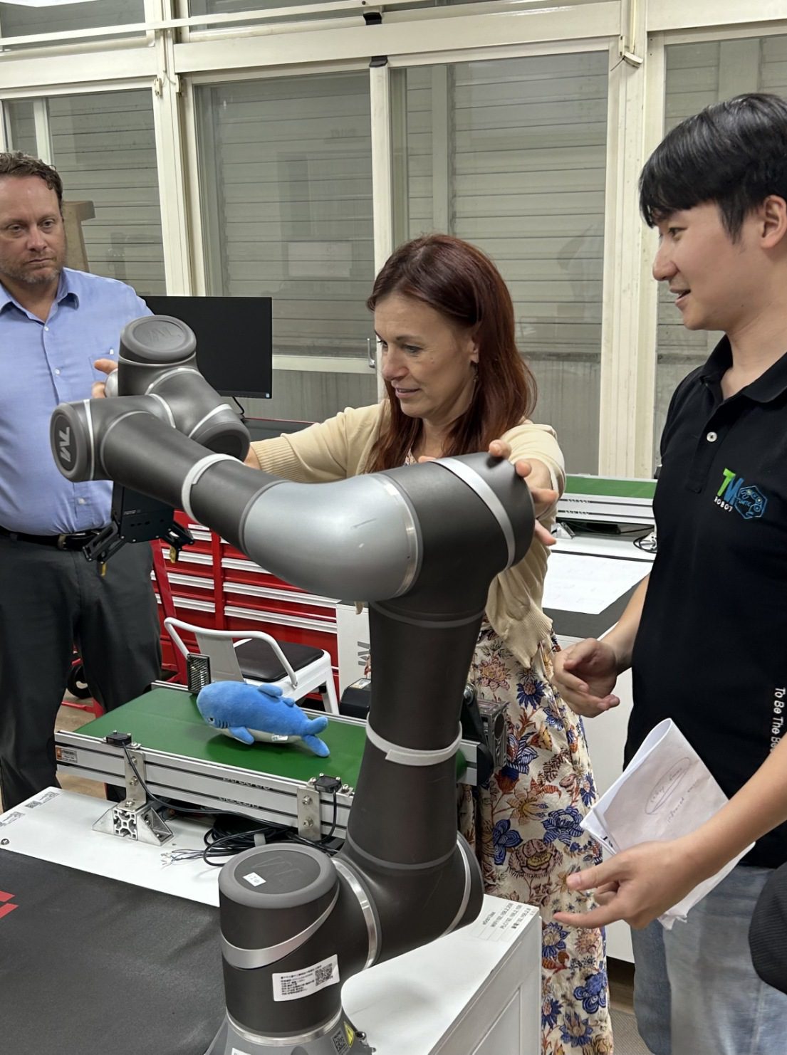 下午到訪台中高工智慧製造中心,參觀該校「CNC五軸加工中心」及汽車科與機械科實習工場,觀摩學生現場操作,體現台中高工培育兼具理論與實務能力技職人才的成效,並於「智慧製造中心」觀摩AI協作型機器手臂教學,該中心引進國際先進設備與技術,結合產業合作與專業課程,展現台中市技職教育與高端製造科技的融合。