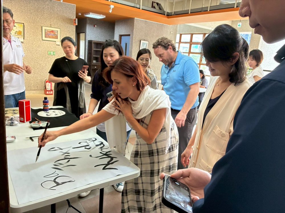 來賓們也參與書法體驗活動,感受中華文化之美,並於活動尾聲進行綜合座談與合影,表達對青埔國小教學品質與學生表現的高度肯定。