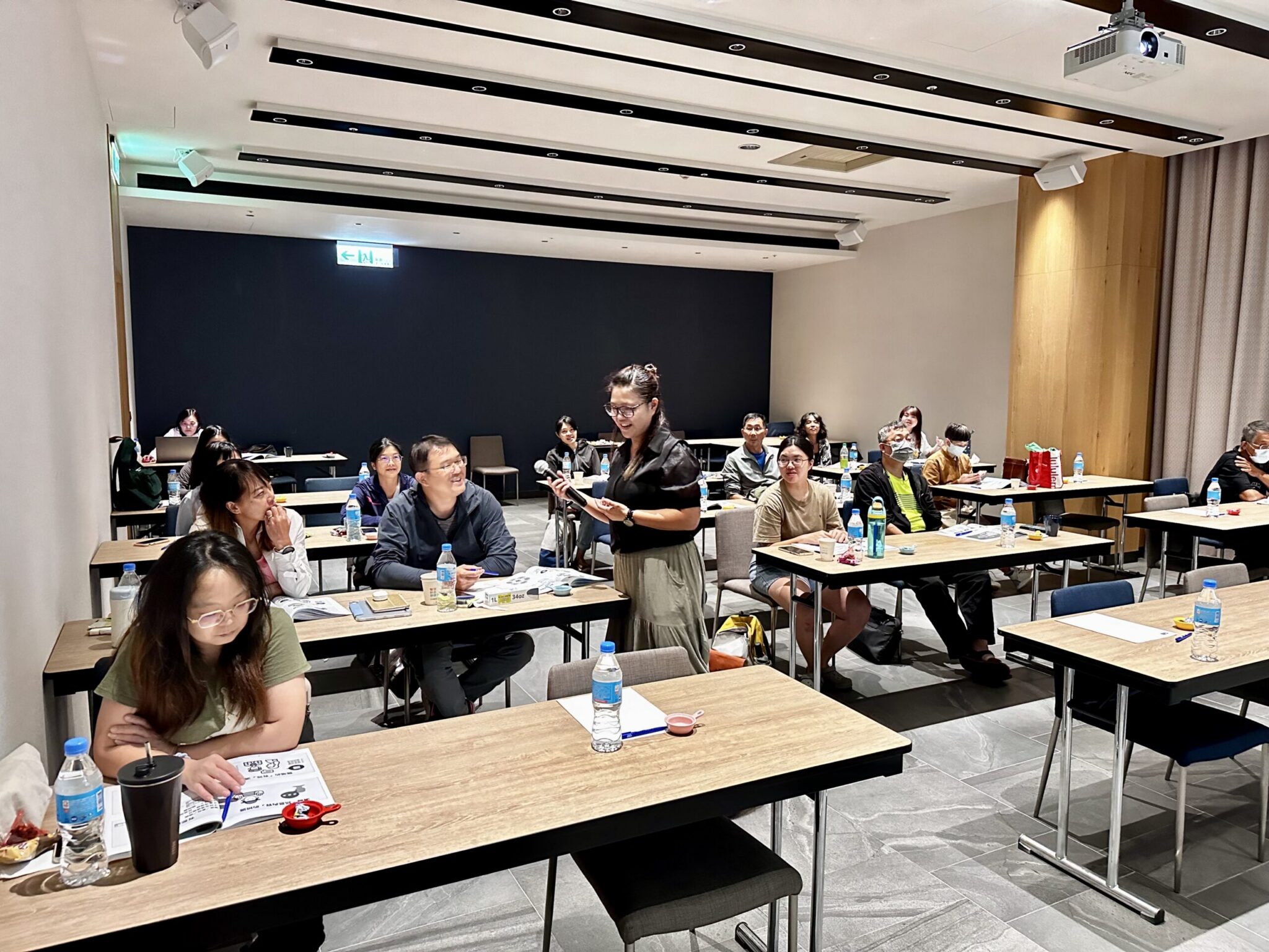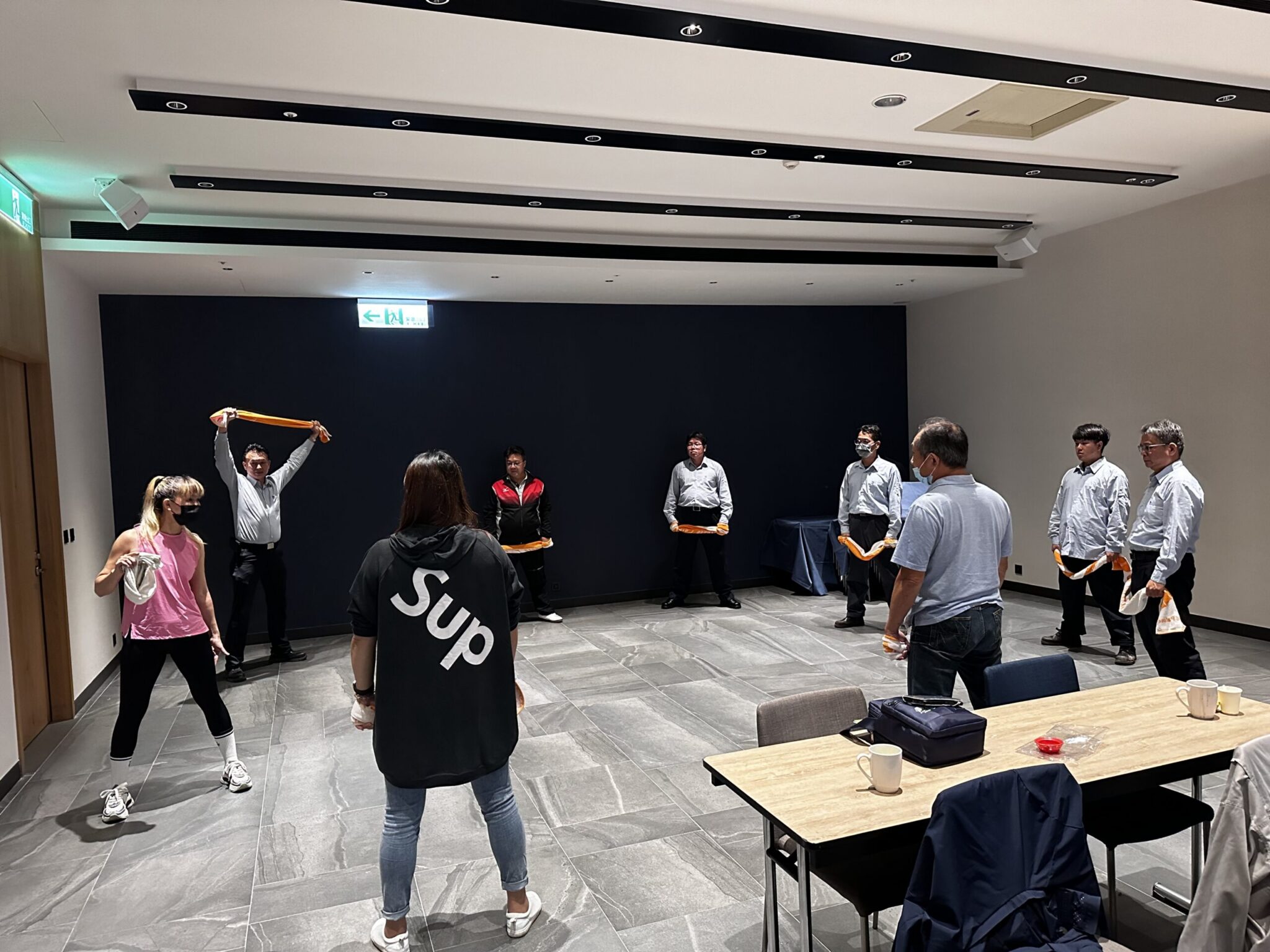 在今年度10月4日及10月20日於嘉義智選假日酒店,共舉辦2場次集合教育訓練,課程內容除了職業安全衛生自主管理、感電及火災爆炸危害預防實務,並針對職場上可能遇到的心理壓力,特別邀請諮商心理師帶領著家族夥伴認識情緒及如何有效紓壓。另外,考量家族夥伴在工作中容易發生久站、搬運動物或長期使用工具等,教導人因性肌肉骨骼傷害之預防,利用容易取得的毛巾,透過簡易放鬆伸展,以減緩肌肉與骨骼傷病。