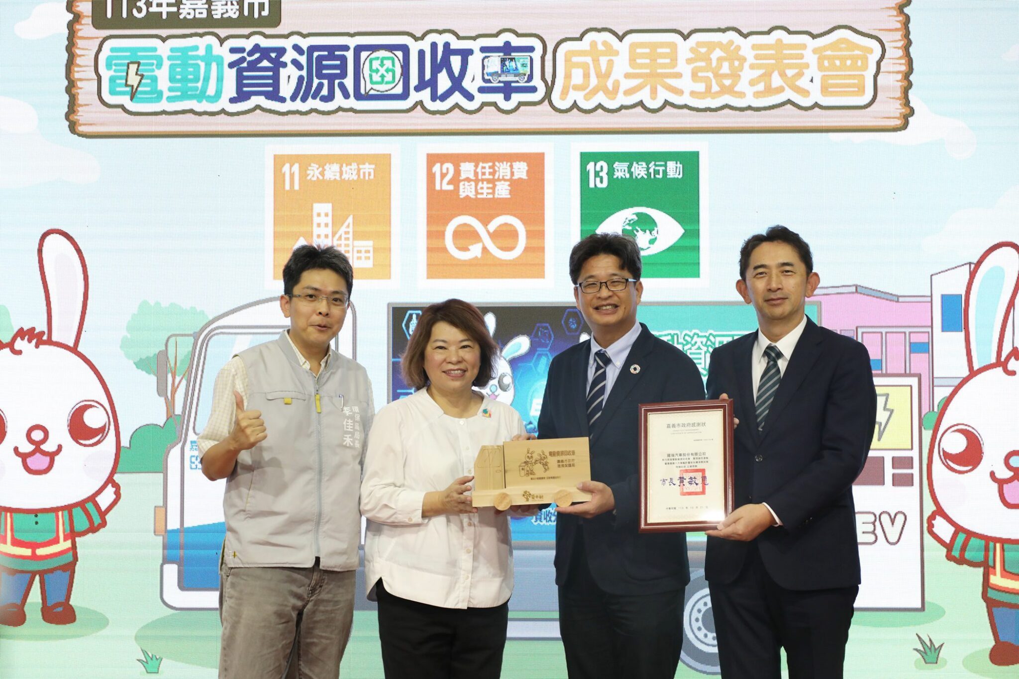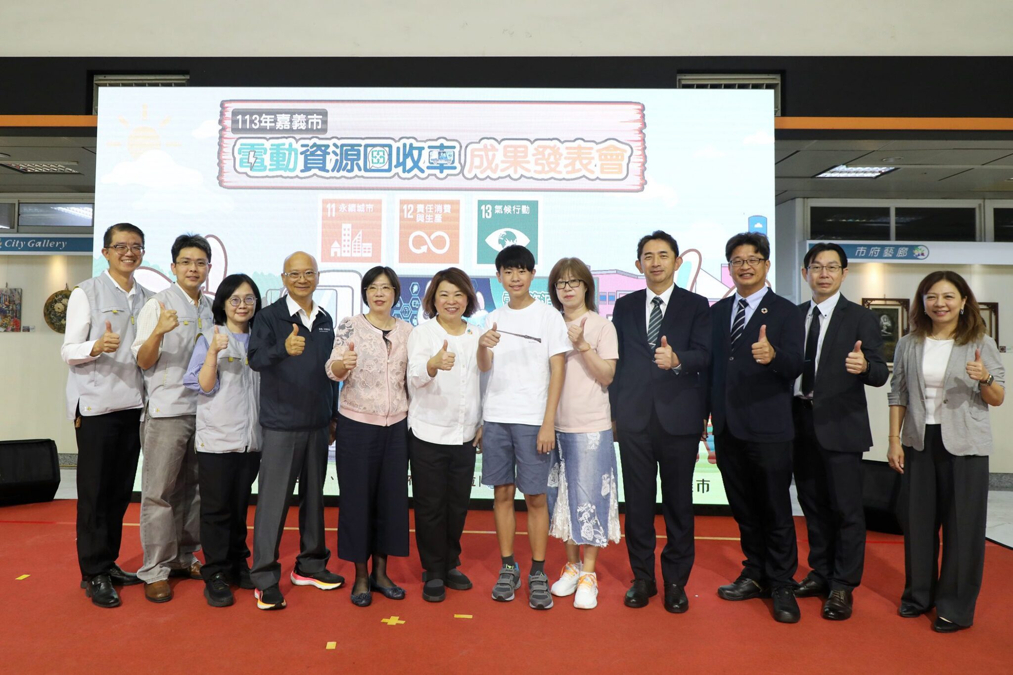 為因應2050淨零碳排,嘉義市政府積極推動永續淨零政策,並訂定「嘉義市淨零排放永續管理自治條例」,成為非六都首個將2050淨零排放正式列入地方自治法規縣市。另呼應國發會淨零轉型十二項關鍵戰略第7項「運具電動化及無碳化」,在環境部及經濟部的指導下,嘉義市政府環境保護局於今(113)年5月1日起與國瑞汽車股份公司合作電動資源回收車試行計畫,並於今(21)日舉辦全台首例3.5噸電動資源回收車成果發表會,市長黃敏惠與環境部資源循環署署長賴瑩瑩、經濟部產業發展署童建強簡任技正也出席共襄盛舉。此為繼「嘉義市市區100%為電動公車」後另一項領先全國推行之「運具電動化及無碳化」政策。