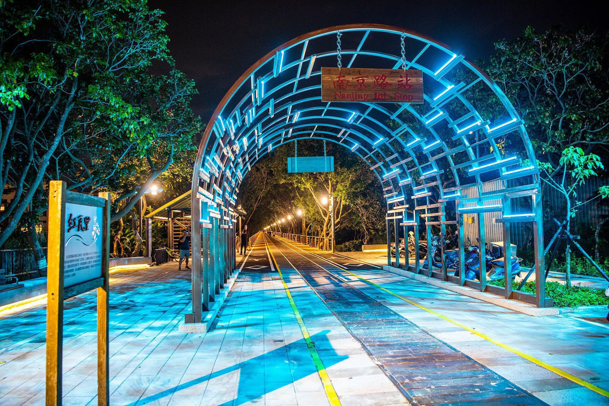 張婉芬進一步表示,本案將優化自紅瓦厝站至鴿溪寮站全長1公里的光環境設施,分兩工區施作,第一工區為鴿溪寮站口至道將圳站(5月16日至7月31日)、第二工區為道將圳站至紅瓦厝站(8月1日至10月31日)。工程設計將兼顧夜間照明與生態環境平衡,並針對鴿溪寮站及道將圳站入口拱門進行光環境優化,提供民眾有別於市區段的夜遊氛圍。