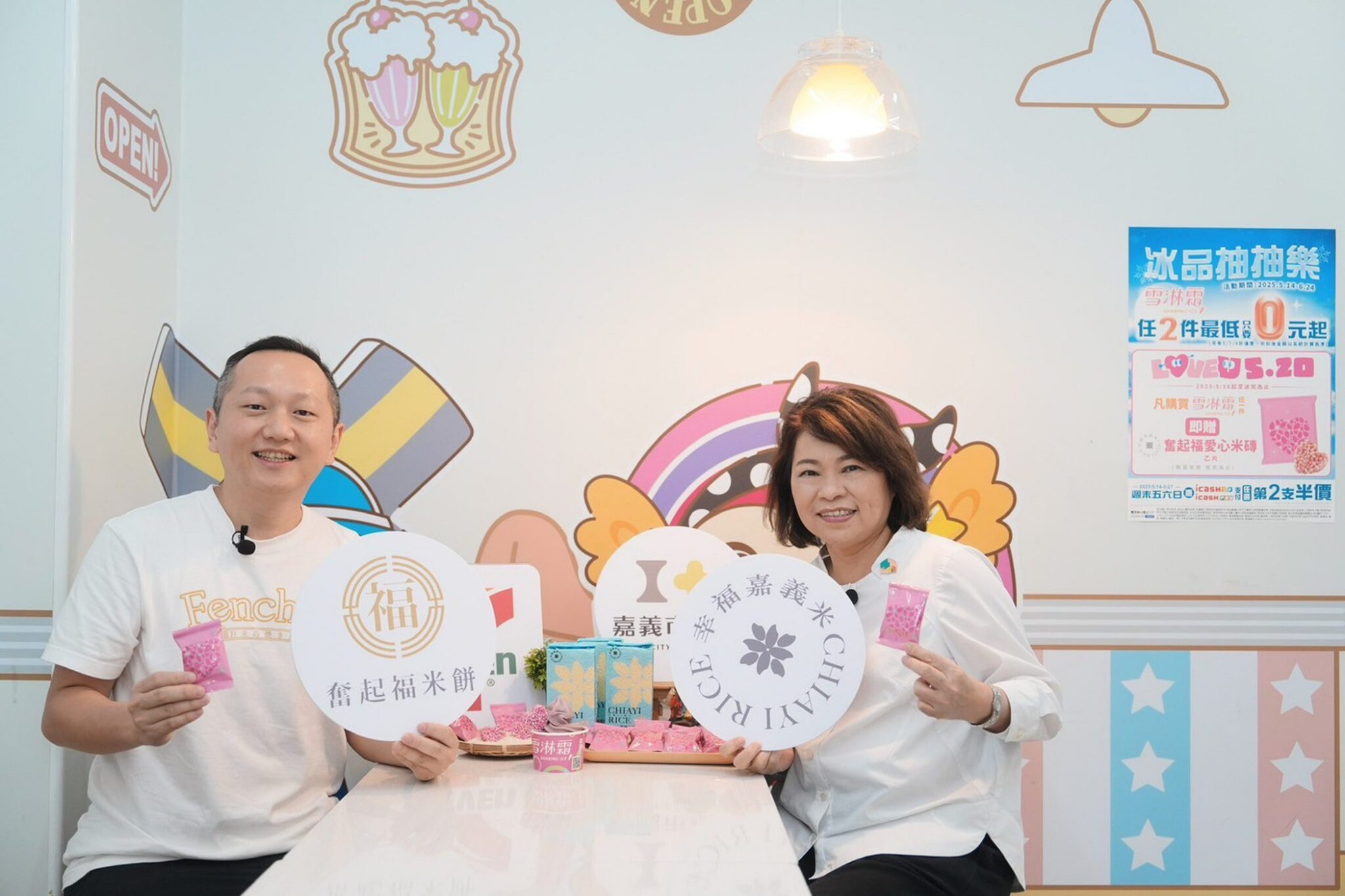市長黃敏惠12日前往7-ELEVEN拍攝短影音,化身「嘉義幸福米」代言人,透過年輕化行銷方式推廣在地農產,吸引更多年輕世代認識嘉義的米食文化與農業價值。