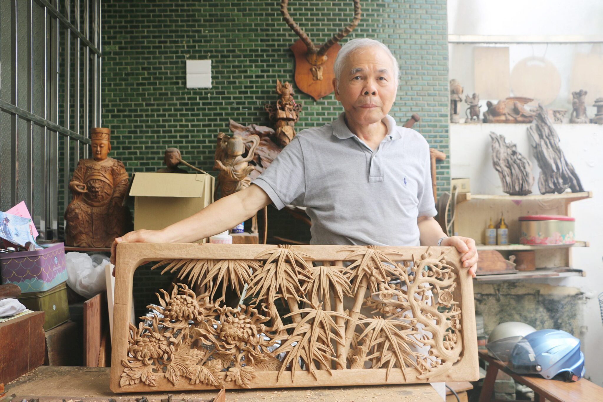 蔡共新藝師1948年出生於屏東潮州,後定居於嘉義市。初中畢業約15歲時,拜台南市木匾暨木雕師傅郭炳坤為師,學習3年4個月後出師,是在傳統體系下自我精進而成。