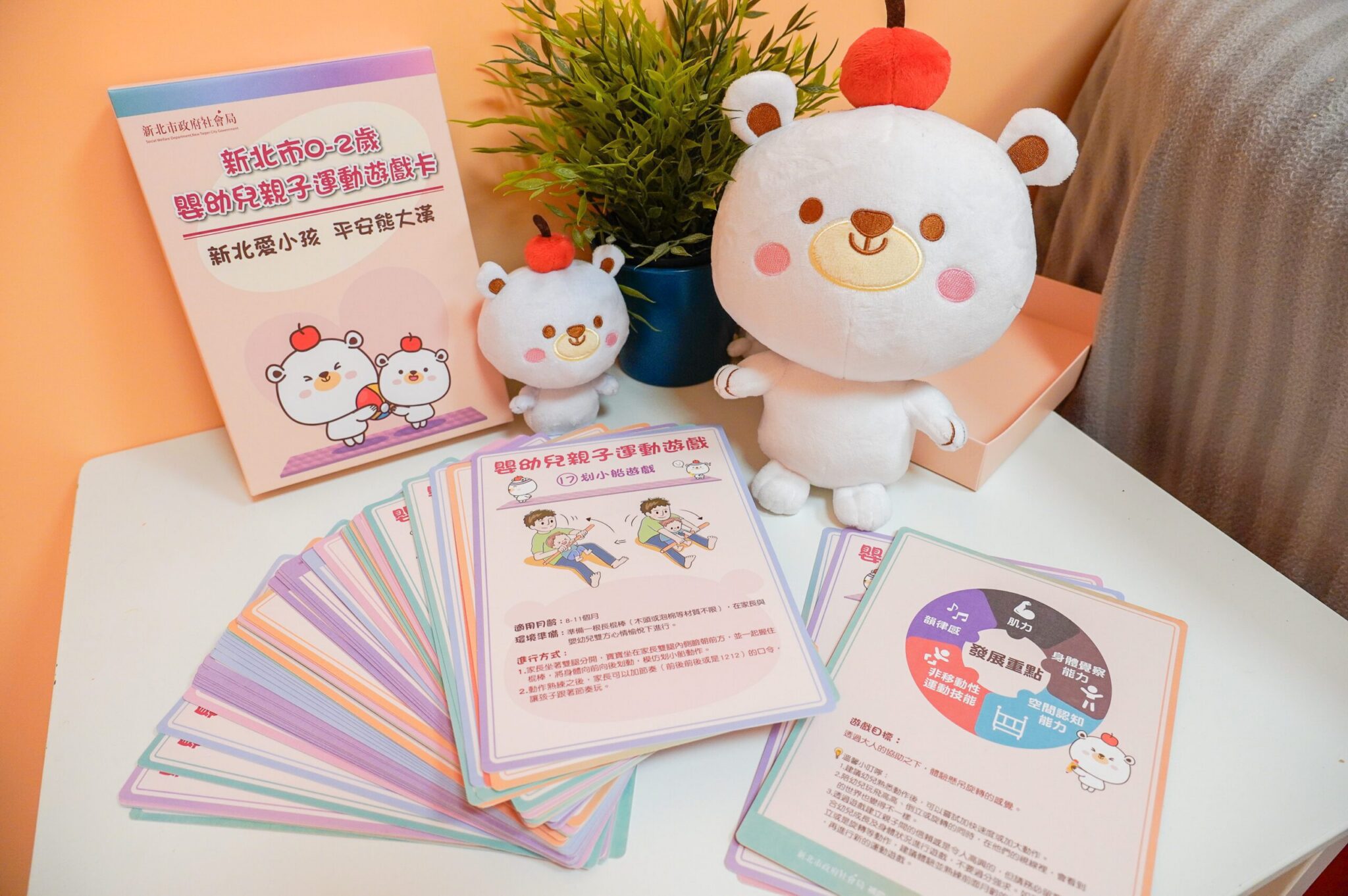 新北社會局再創育兒神器,新創的0-2歲親子運動遊戲卡,將在新北市公共托育中心首推,自5月19日起,將依據孩子發展月齡適齡發卡,邀請家長陪伴孩子健康運動好作息。
