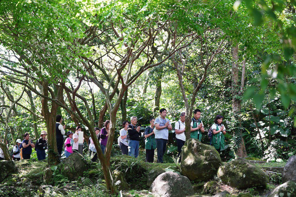無論是水聲淙淙的臨溪步道,還是綠樹成蔭的藥師古佛迴環步道、法華公園步道,從早晨7點半開始,步道上滿是民眾高唱佛號的梵音,藉著3步一拜的方式,向心中的靈山虔誠頂禮;最後同在祈願觀音殿前,將朝山的功德,迴向給養育生命成長的父母親長與大地,感恩諸佛菩薩開啟慧命的慈悲護佑。
