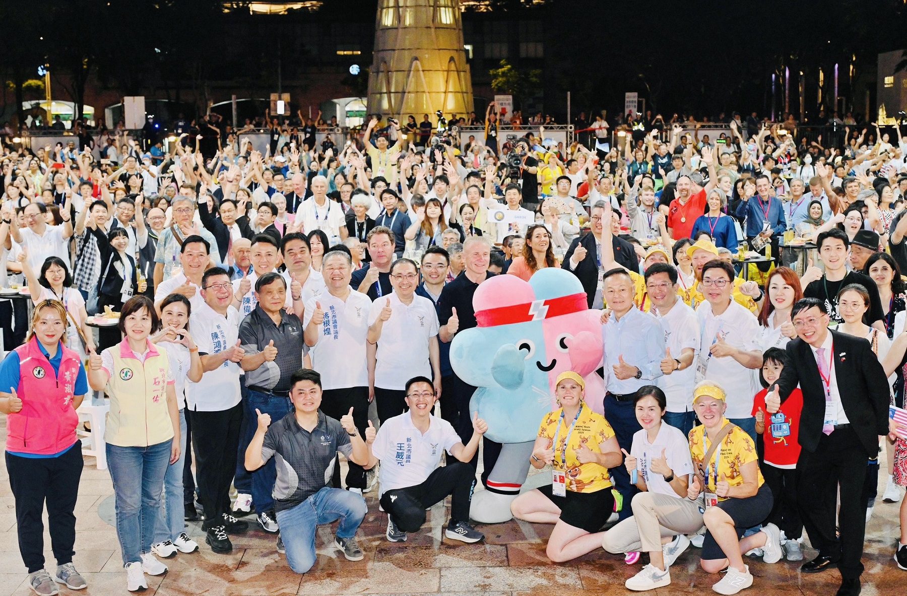 「2025雙北世界壯年運動會」昨(17)日登場,集結世界各地2萬多名運動好手齊聚雙北,開啟為期兩週的體育盛事。新北市政府今(18)晚,在市民廣場舉行「選手歡迎晚會」迎接各國運動健將及國際貴賓,以最具代表性的文化演出,包括「鼓藝、獅王、神將」為賽會注入熱情與活力。市長侯友宜表示,世壯運不僅是競技的舞臺,更是文化交流的機會,讓世界看見新北的文化能量與城市魅力。