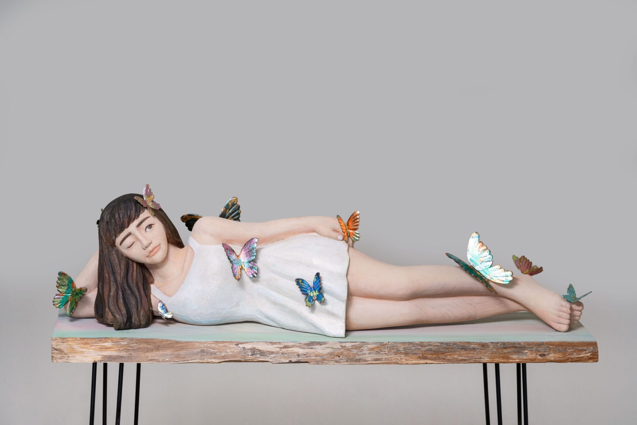 夢蝶絮語Dream shadows|江基名|樟木、美國檜木、箔、丙烯顏料、金屬|2024 120x125x38cm