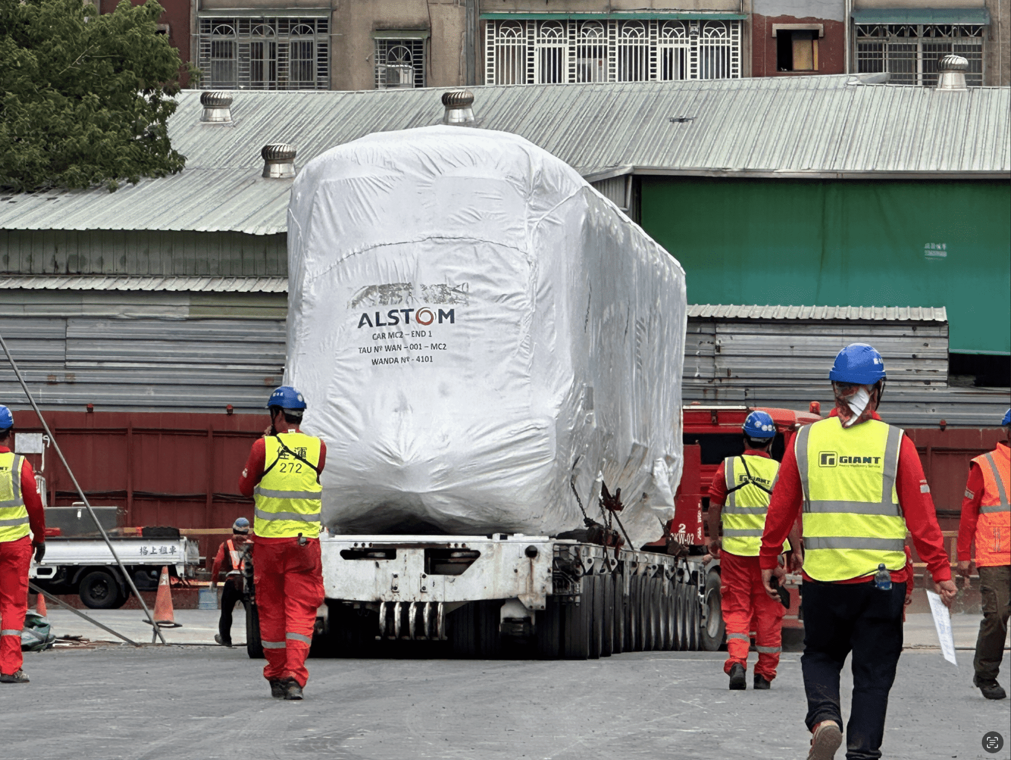 機工處進一步指出,本列電聯車於8月底自巴西桑托斯港包裝上船,行經大西洋、繞過好望角至新加坡港進行中轉,再經馬尼拉運至高雄港;到港卸載之後以專用運輸車輛於夜間離峰時間載運到萬大線的金城機廠。在完成這趟長達一萬八千公里的旅程後,終於風塵僕僕抵達萬大線金城機廠。