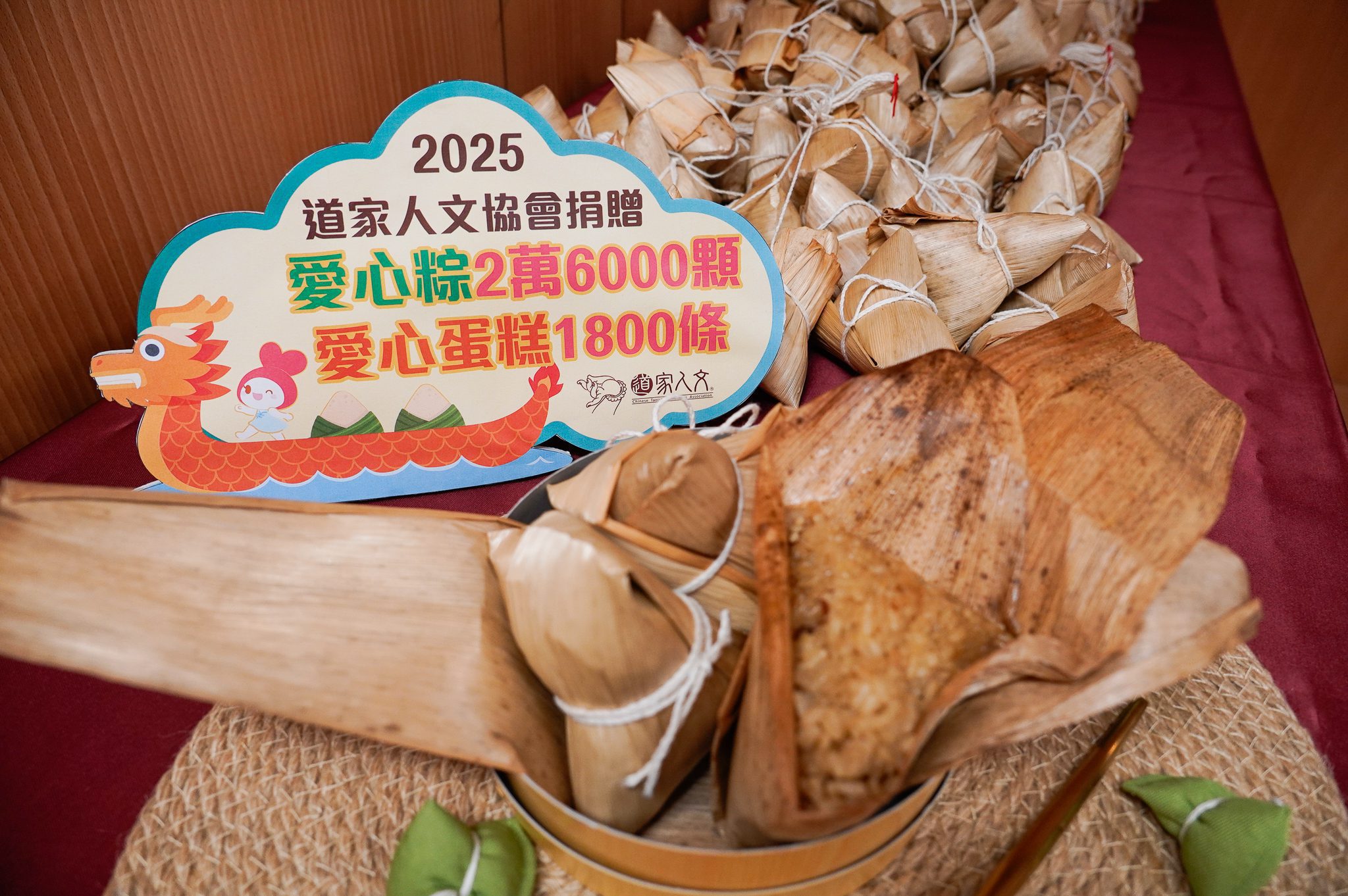 張旖表示,道家人文協會每逢佳節皆與社會局合作,第13年捐贈愛心粽、第9年捐贈母親節蛋糕,希望藉由蛋糕分享甜甜的幸福,粽子則象徵社會的愛與家戶緊密繫在一起,傳遞有形的力量,陪伴弱勢家戶渡過溫暖佳節。