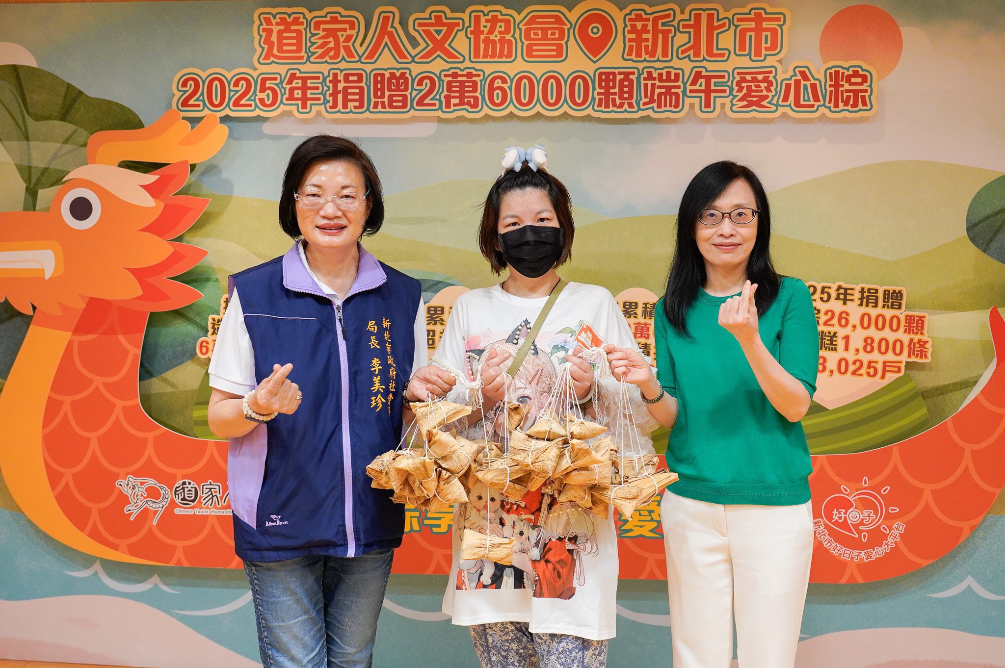 社會局長李美珍說,道家人文協會總是發揮善念,除了有滿滿的愛心照顧弱勢,也照顧在地產業,購買石門粽,成員更是展現向心力和效率,一早已經將粽子送抵新北14處社福中心,後續將由社工配發給服務的家戶。