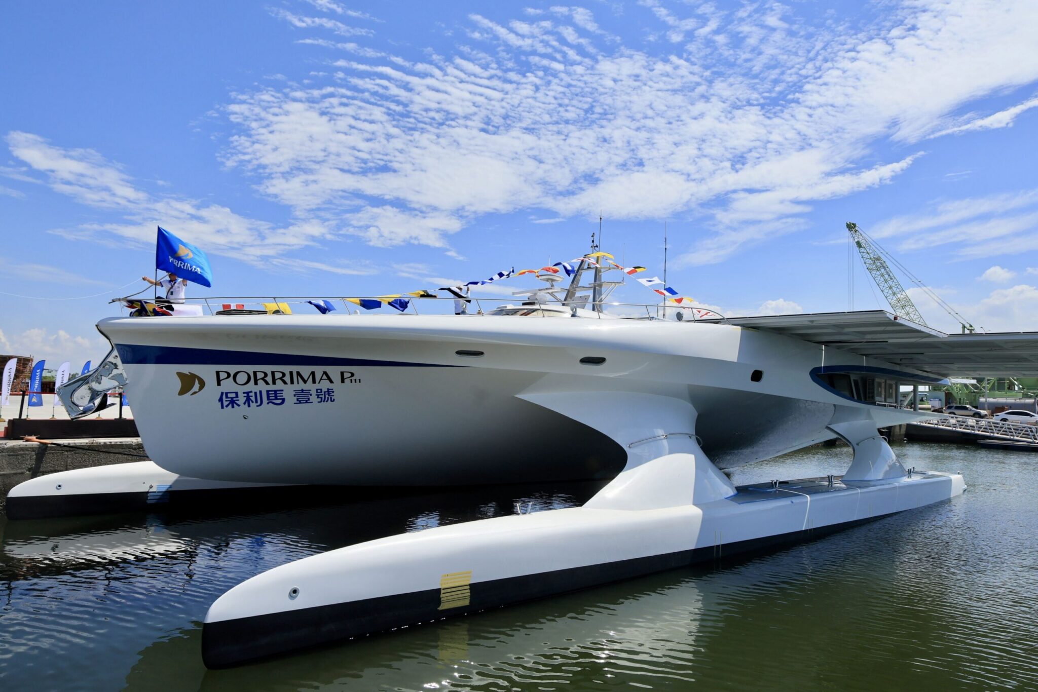 高雄積極推動淨零永續與海洋科技發展,由宏碁集團創辦人施振榮先生號召打造的零碳排未來船「保利馬1號」今日於興達港BOT修造船區正式完成下水,該船採「臺灣設計、在地建造」模式,領先全球的船舶創新設計,整合國內頂尖供應鏈技術,展現我國綠色能源與海洋科技創新實力。