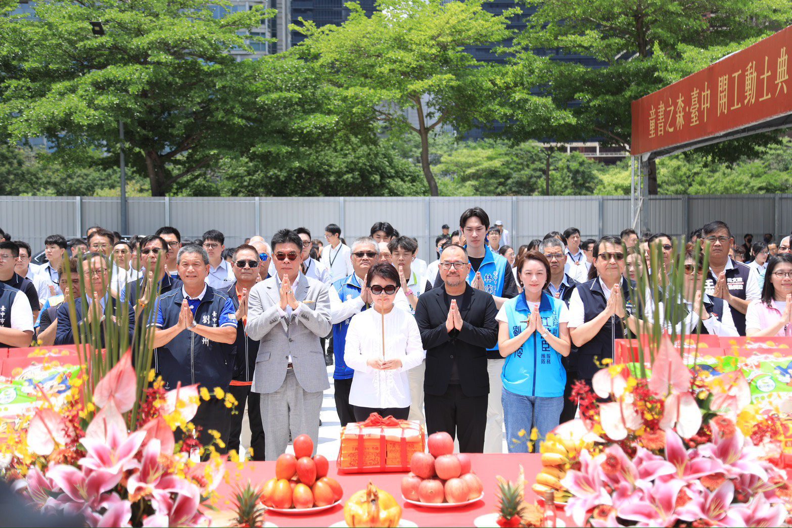 今日動土典禮,包含盧市長、建築師安藤忠雄、安藤忠雄建築研究所顧問龍國英、聯聚建設股份有限公司董事長江韋侖、忠泰建設股份有限公司副董事長李彥良、清水建築工坊董事長廖明彬、建築師王克誠、立法院副院長江啟臣夫人劉姿玲、市議員黃馨慧、劉士州、張廖乃綸、楊大鋐、臺中市政府秘書長黃崇典、文化局長陳佳君、都發局副局長謝美慧、水利局主任秘書林志鴻、捷運工程局主任秘書連昭榮、新工處主任秘書林鈺淳、中市圖館長曾惠君、西屯區長鄭錫禧、國立公共資訊圖書館長馬湘萍、國家圖書館副館長翁誌聰、許景堂伉儷、藝術家鄒駿昇及繪本作家張秀毓、臺中市臺中故事協會理事黃幸如、臺中市山海屯故事協會理事長王淑芬、小大繪本館長樓桂花、台灣兒童文學研究學會理事長黃惠玲,市政顧問江屘菊、楊辰文、廖松岳,立法委員顏寬恒及副議長顏莉敏、廖偉翔、黃仁,市議員林霈涵、邱愛珊、陳文政、黃守達、林祈烽也派員,閱讀磐石獎得獎學校及鄰近學校、西屯區多位里長等人皆到場共襄盛舉。